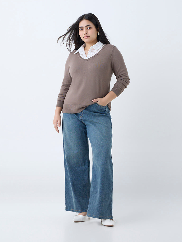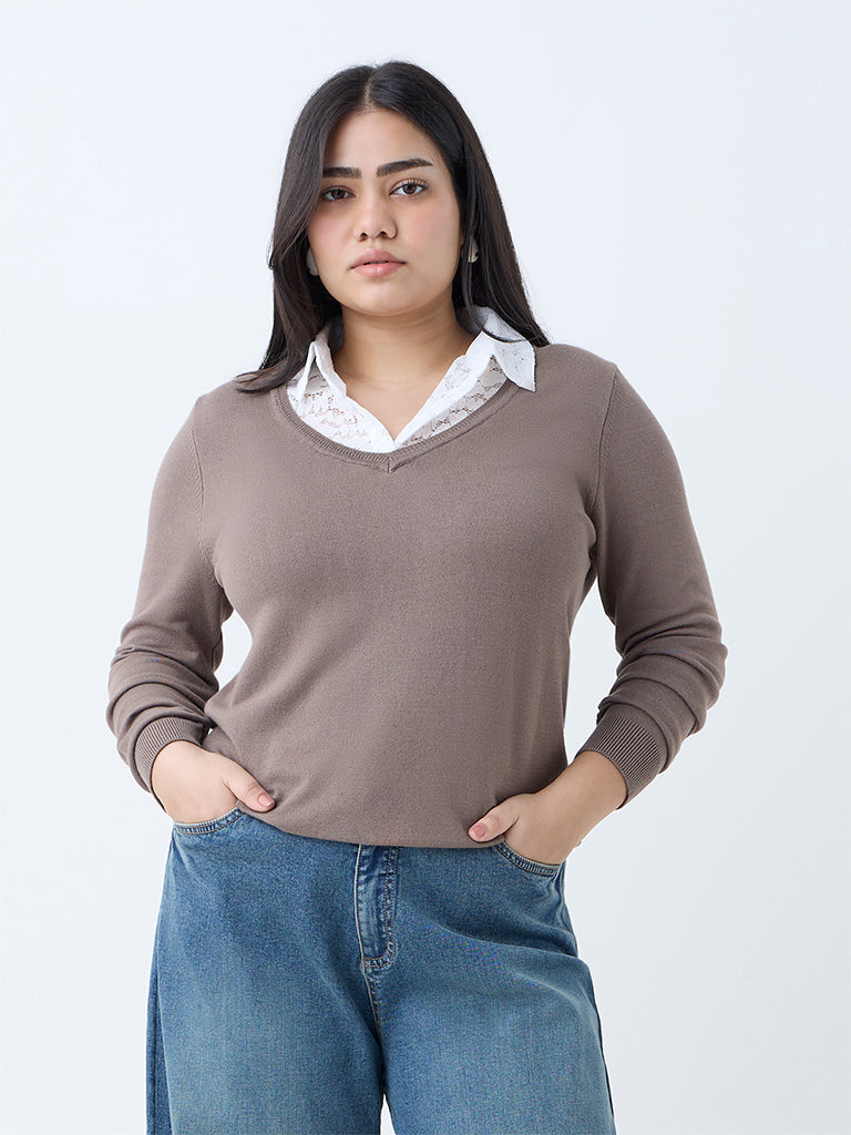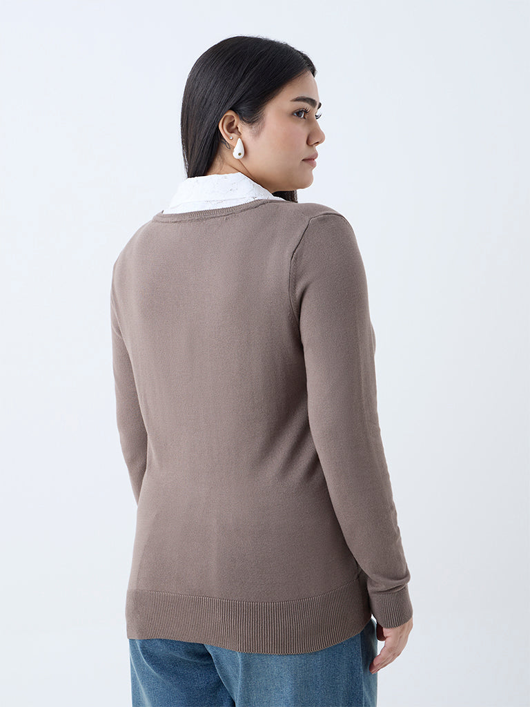 Gia Brown Lace-Detailed Sweater
