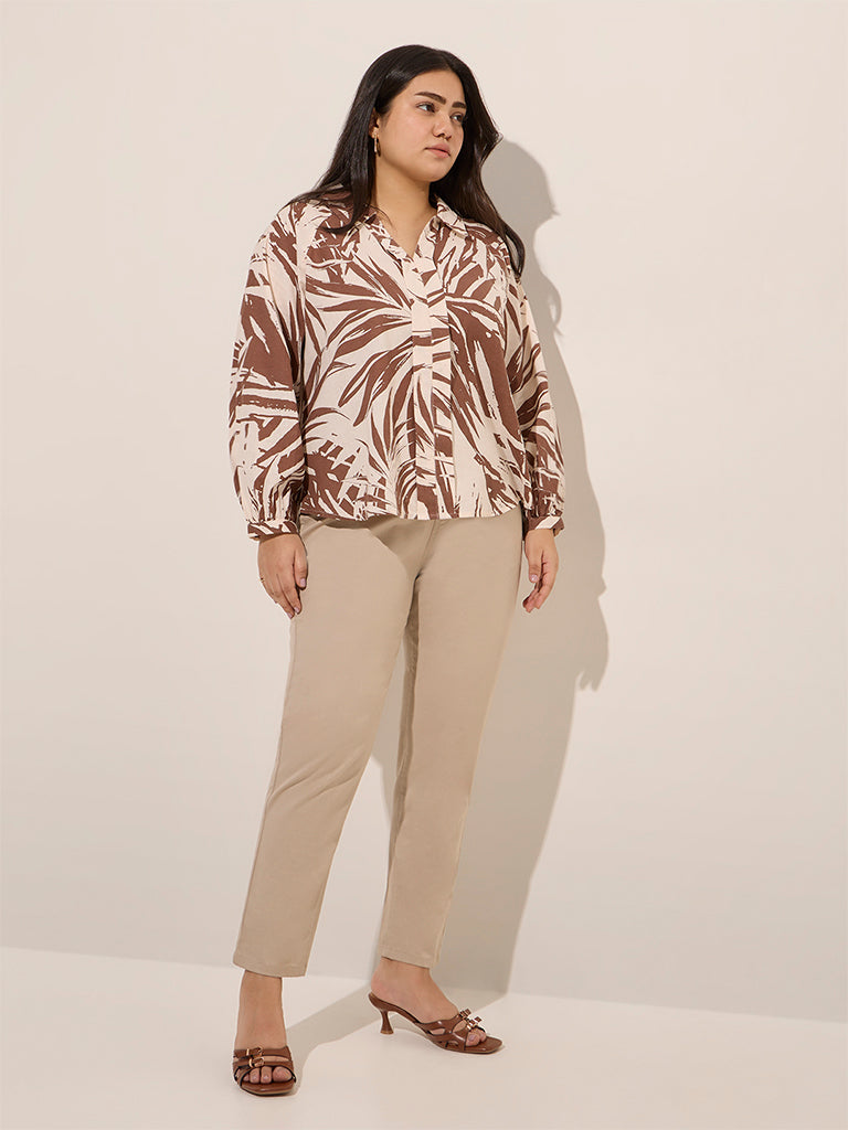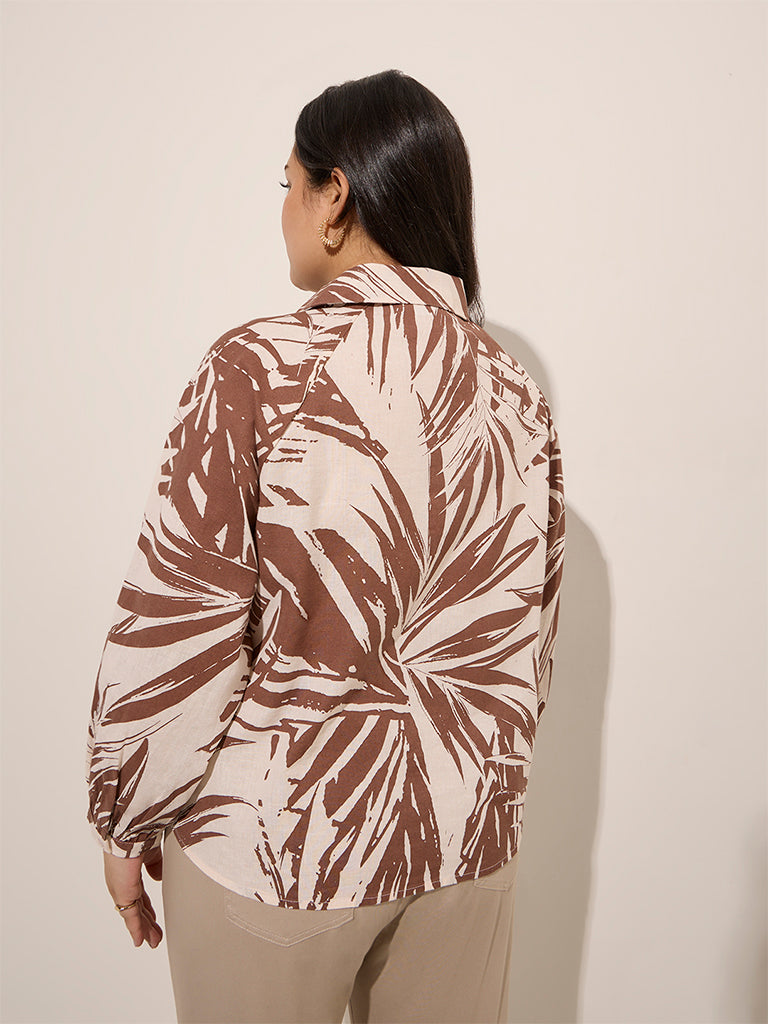 Infused with earthy charm. this brown blouse from Gia flaunts bold leaf prints for a contemporary look. Crafted from a lightweight fabric. it features a spread collar. concealed button placket. and blouson sleeves for added flair and comfort.