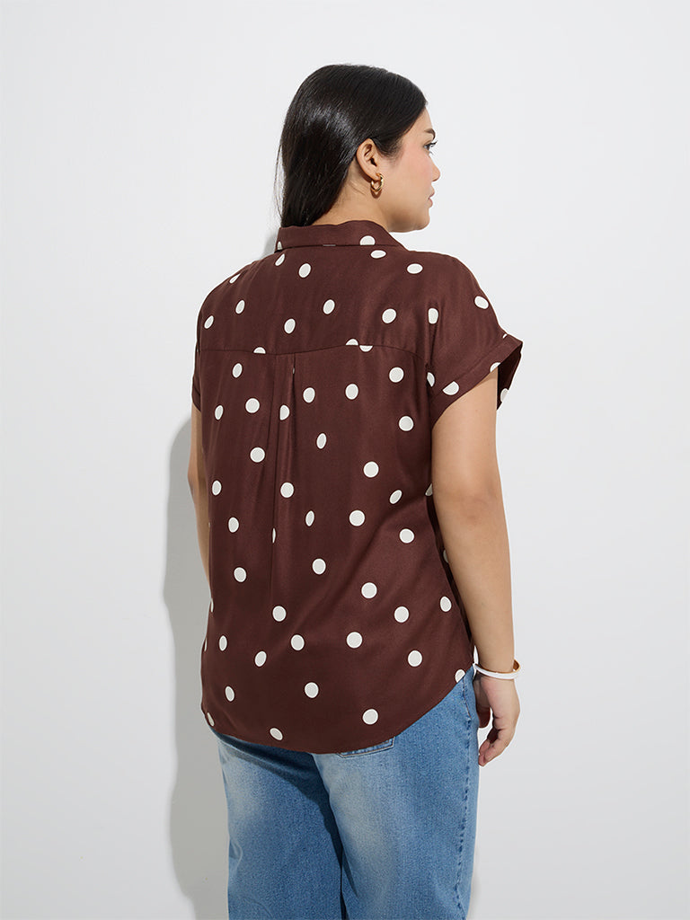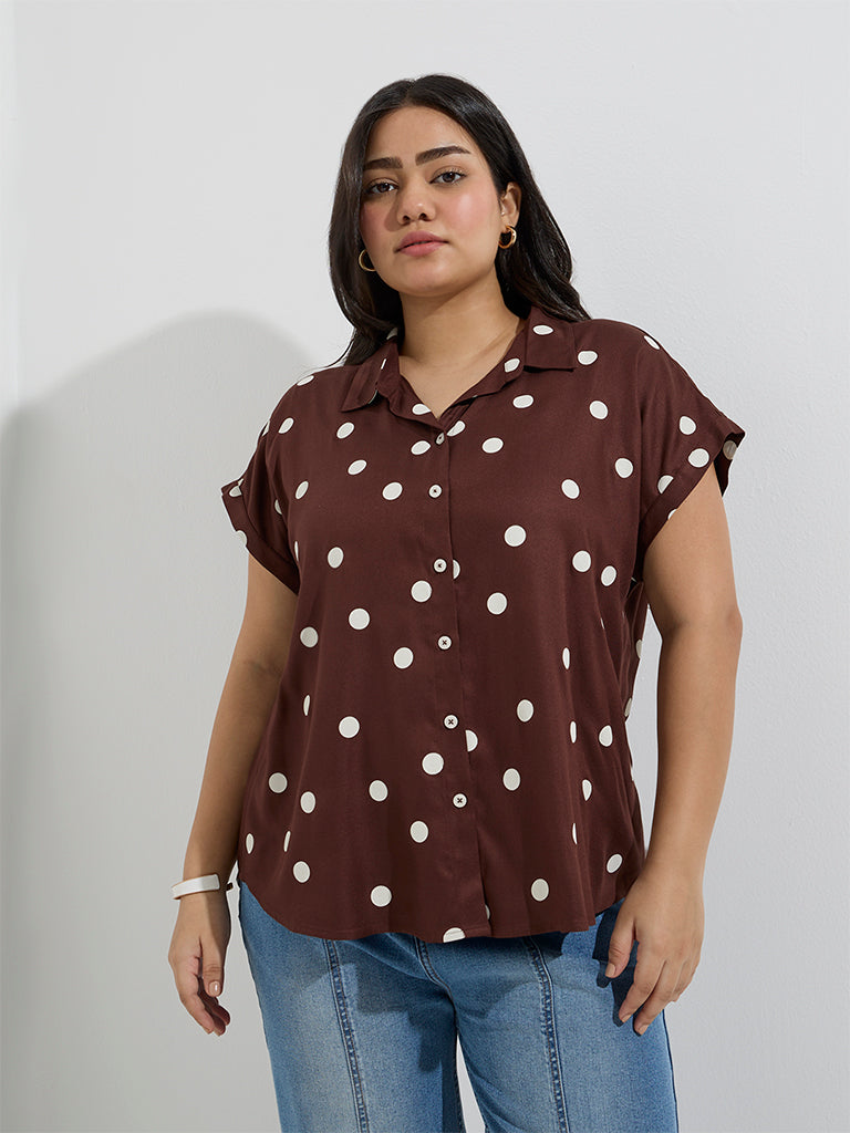 Channel timeless charm with this brown shirt from Gia. designed with classic polka dots that lend a vintage-inspired touch. Spun from quality fabric. it’s styled with a sharp collar that extends to a button placket and relaxed dolman sleeves finished with upturned hems.