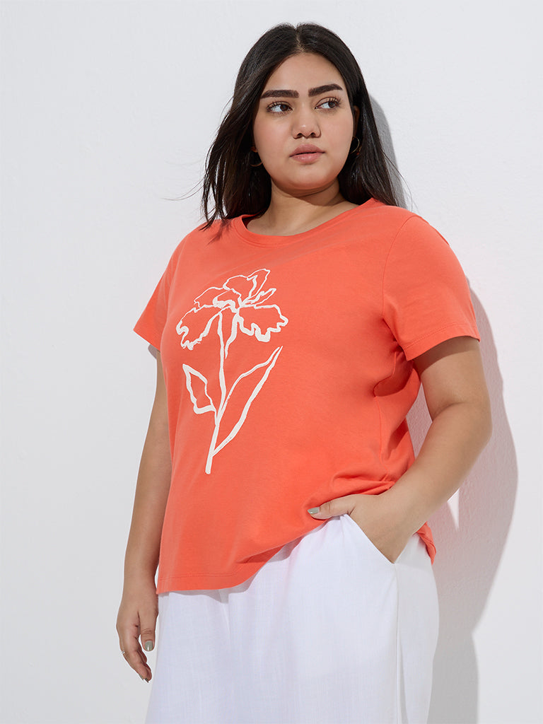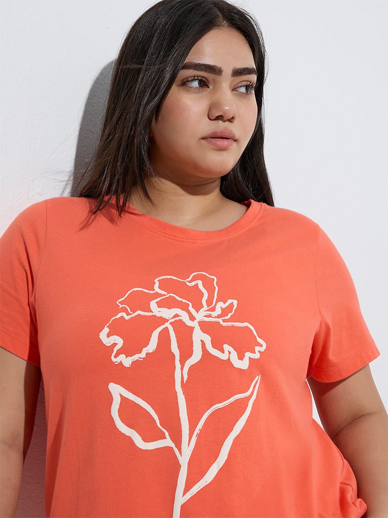 Gia Coral Floral Printed Cotton T-Shirt