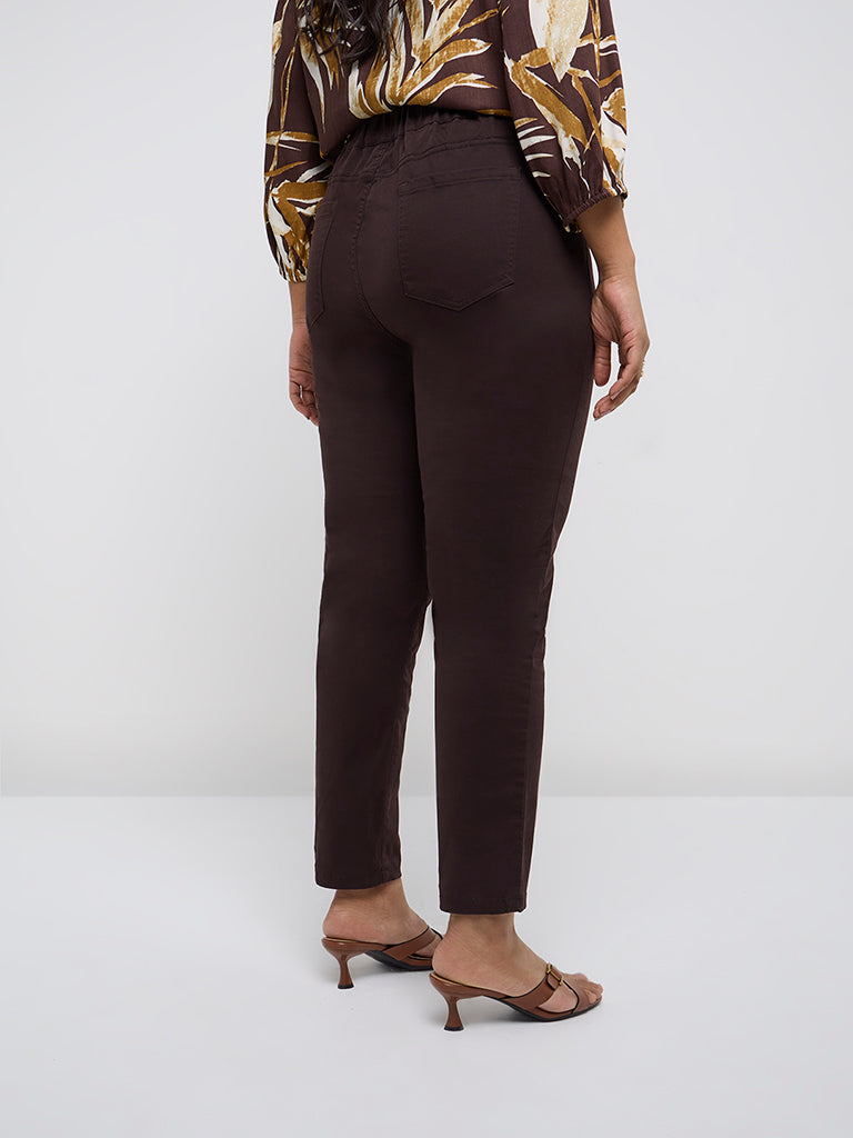 These dark brown jeggings from Gia are built with a breathable fabric. Offering a high-rise fit. they include a smooth elastic waistband and multiple pockets.