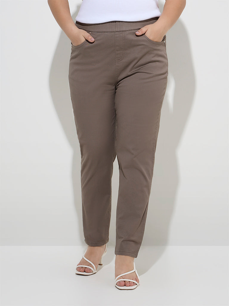 Showcasing a versatile colour. these dark brown jeggings from Gia are crafted from a cotton-blend fabric with a hint of stretch. Designed with an elasticated waistband. they offer ease of wear. while multiple pockets add a touch of functionality.