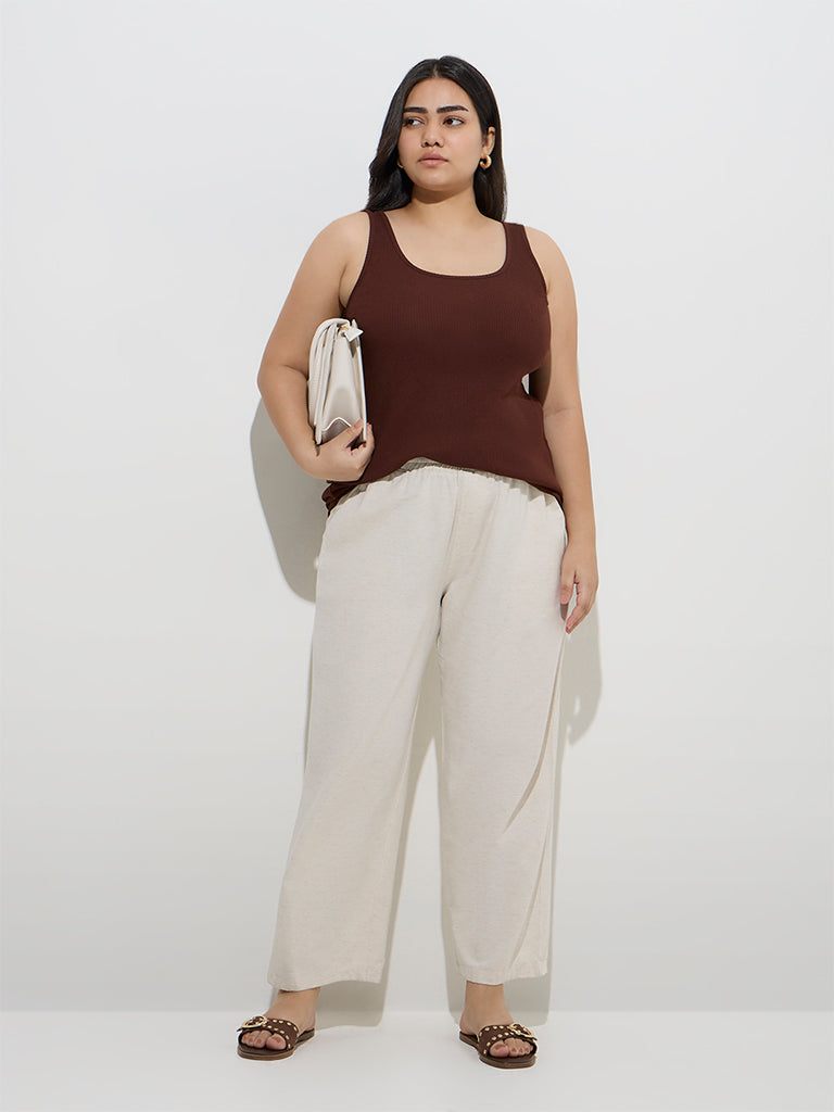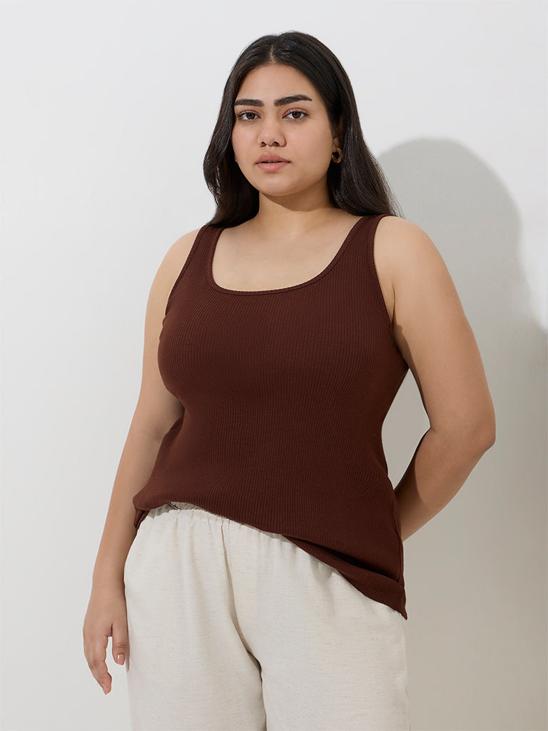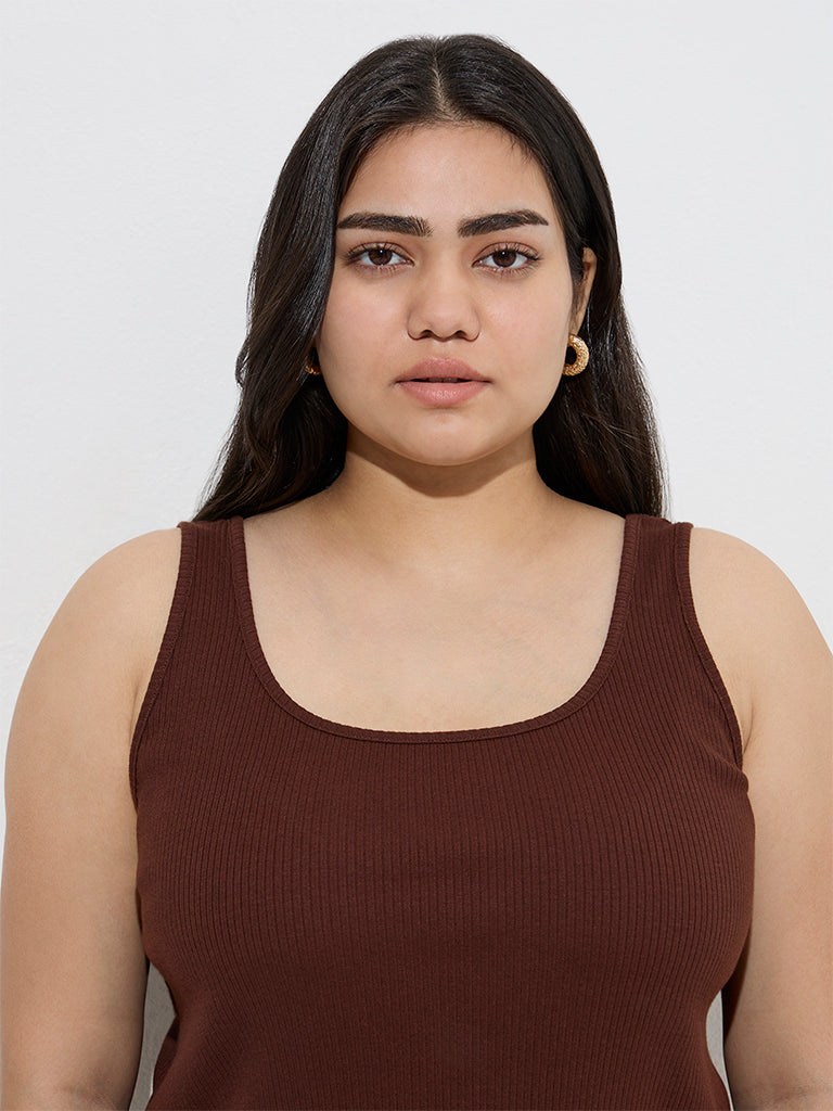 Gia Dark Brown Ribbed Cotton-Blend Tank Top