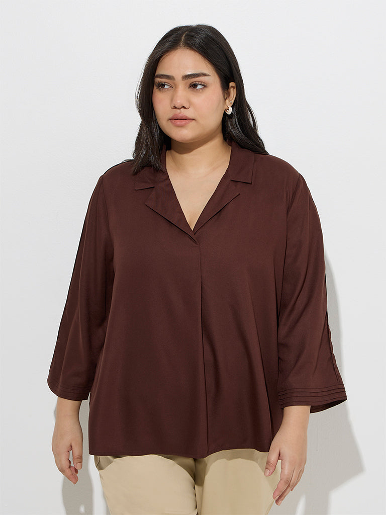 Gia Dark Brown Solid Blouse