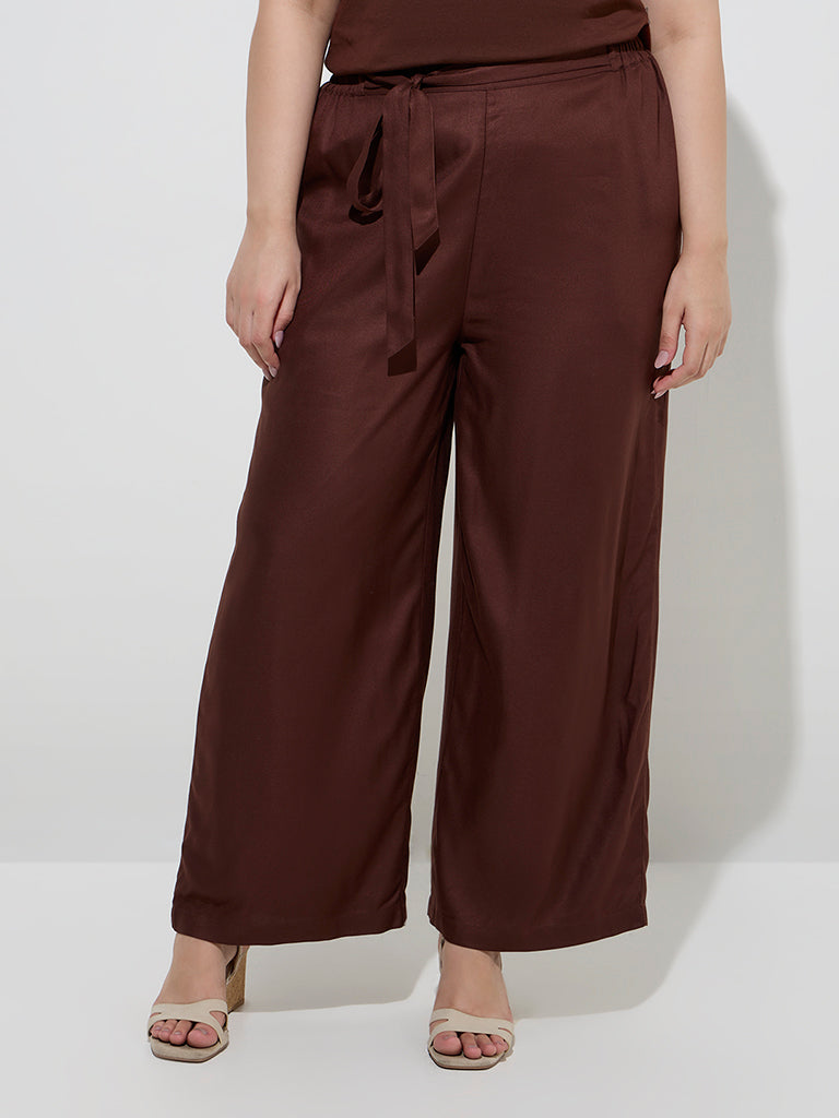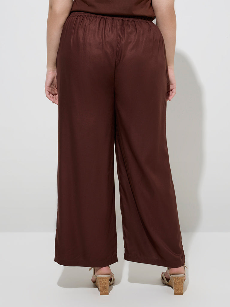 Gia Dark Brown Solid Mid-Rise Pants
