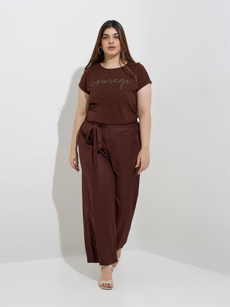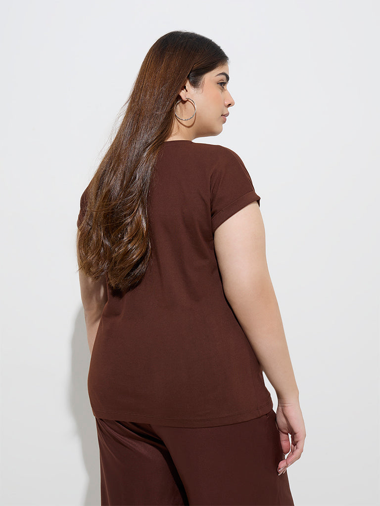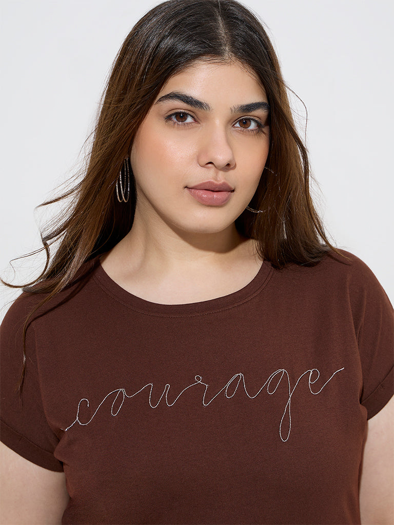 Gia Dark Brown Typographic Design Cotton T-Shirt