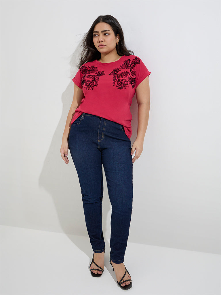 Gia Dark Pink Embroidered Cotton T-Shirt