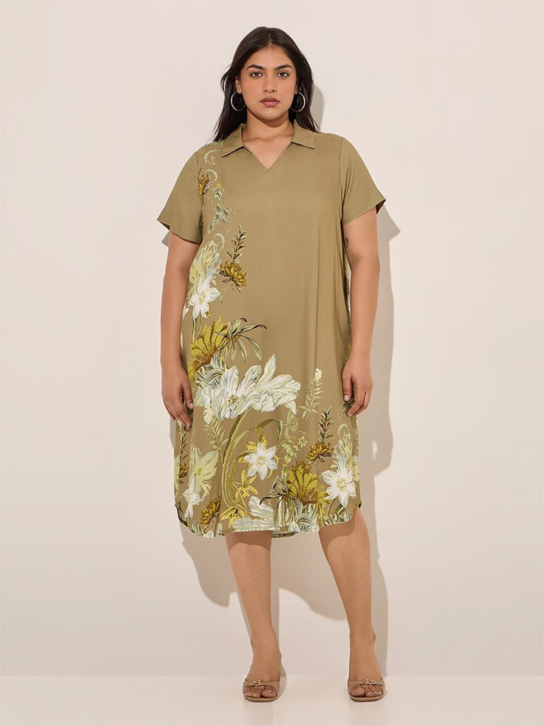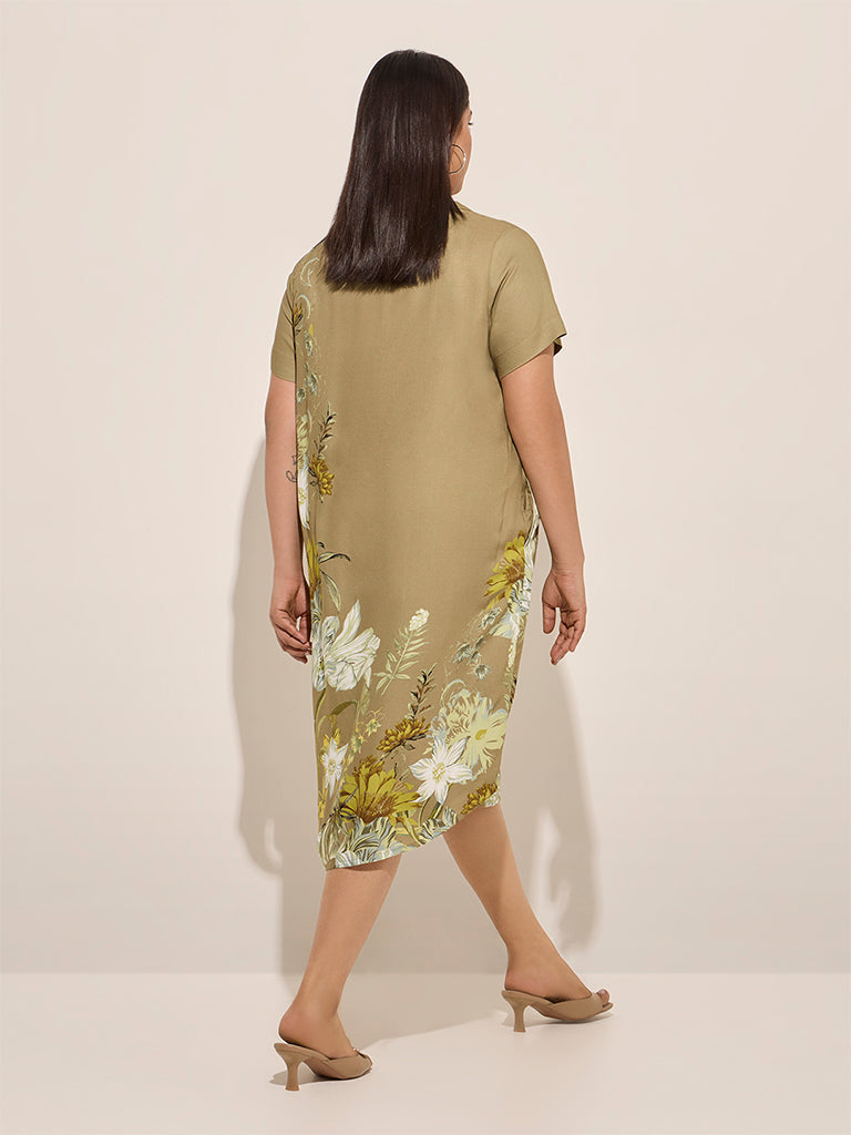 Be the first to review “Gia Khaki Floral Printed Straight Dress”