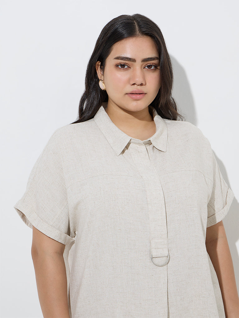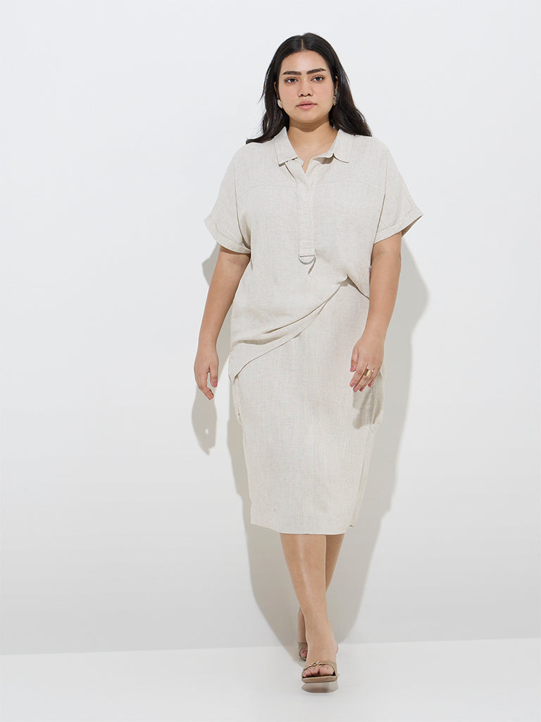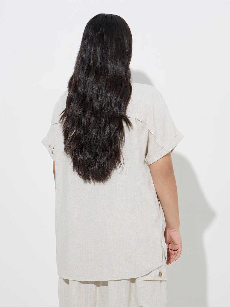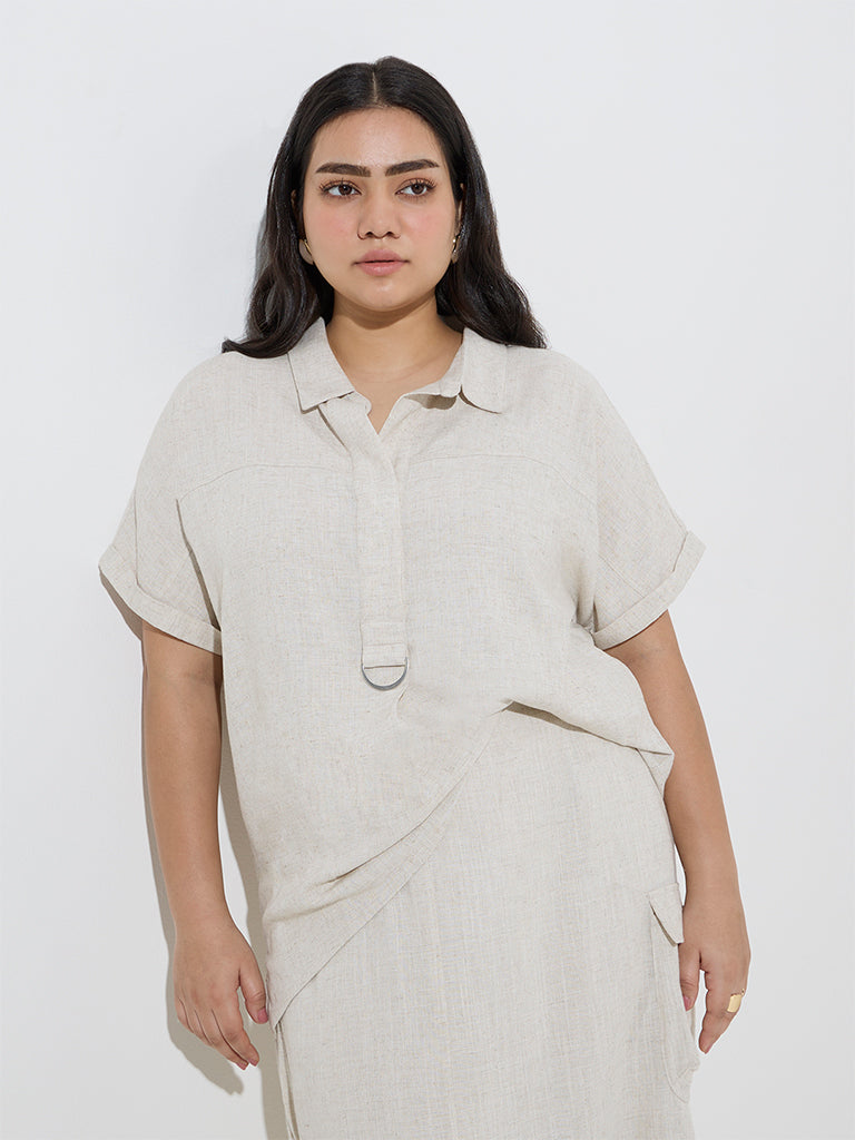 This light beige blouse from Gia is designed in a minimalistic profile. Milled from a luxurious fabric. it includes a spread collar that extends to a concealed button placket and upturned dolman sleeves.