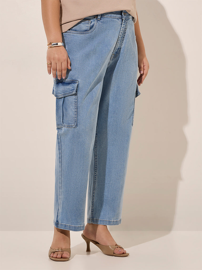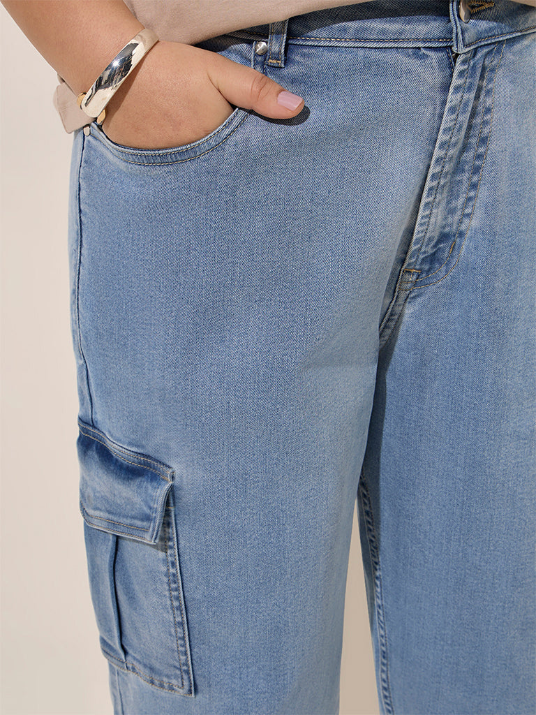 Gia Light Blue Cargo-Style Relaxed-Fit Mid-Rise Jeans