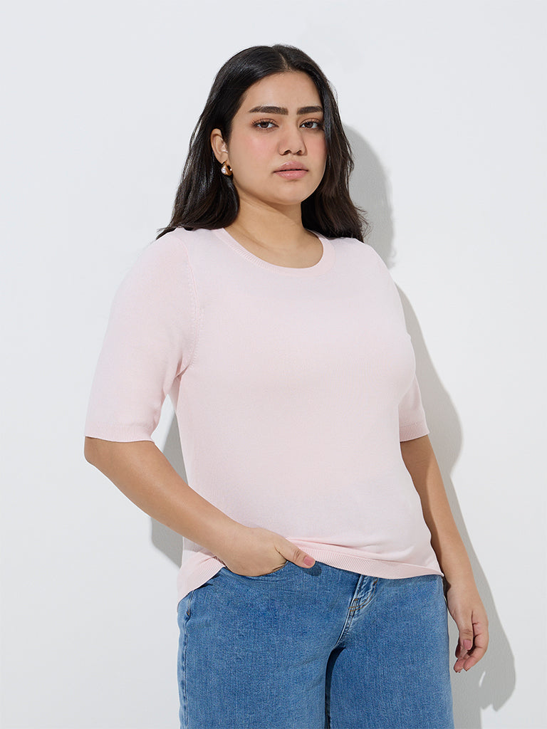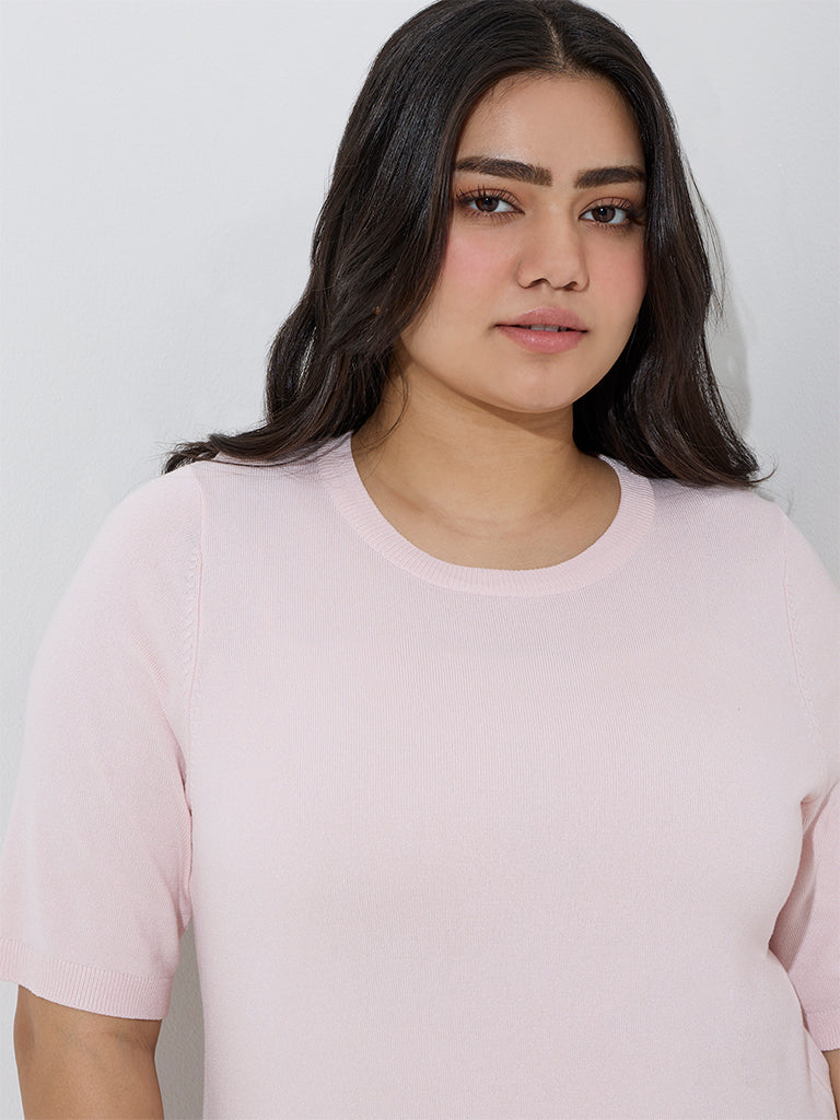 Gia Light Pink Solid Knitted T-Shirt