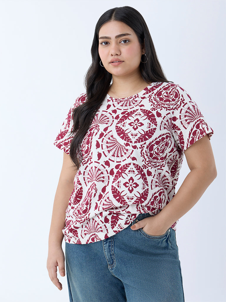 This maroon t-shirt from Gia makes an instant impression with its bold mix of prints. Created from a premium cotton-rich fabric. it features a round neck and half sleeves for a laid-back fit.