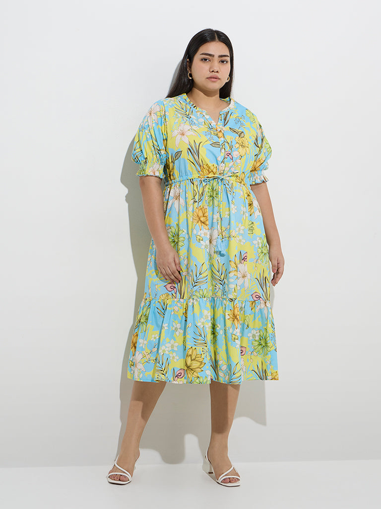 Gia Multicolour Botanical Design Cotton A-Line Dress