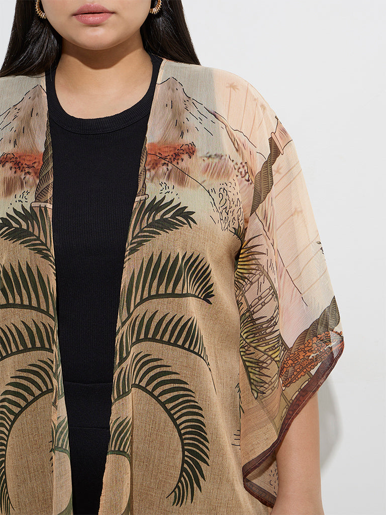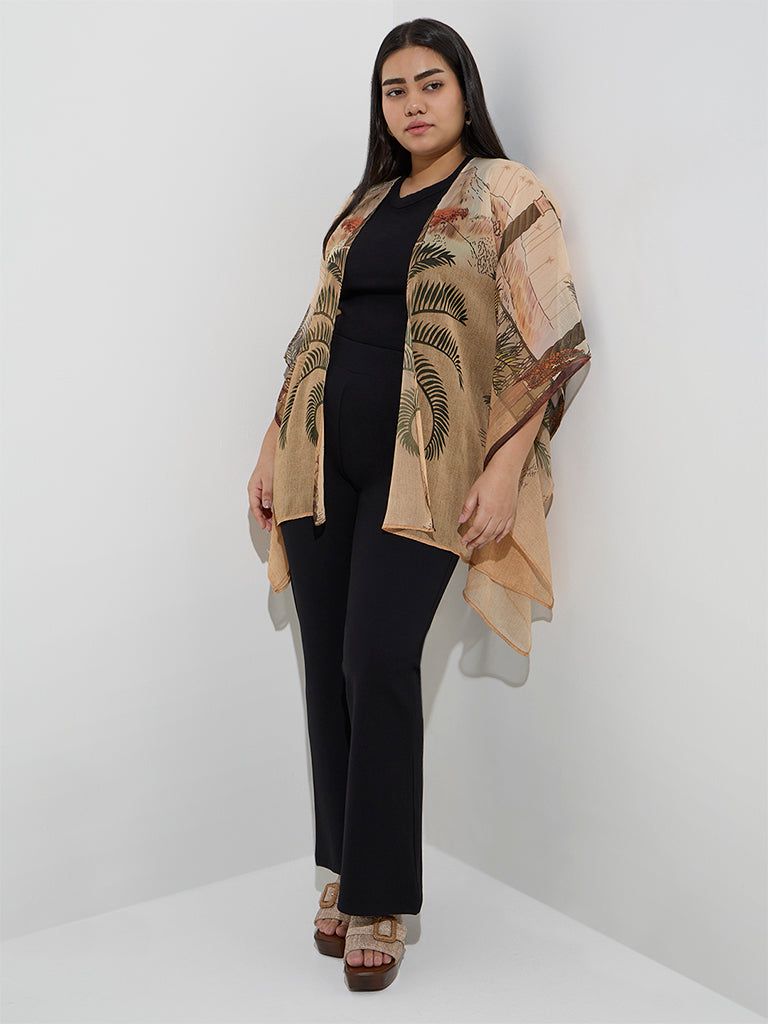 Milled from a breathable fabric. this multicolour shrug from Gia offers a lightweight and flowy feel. Showcasing a tropical-inspired print and kimono sleeves. it blends effortless style with all-day comfort.