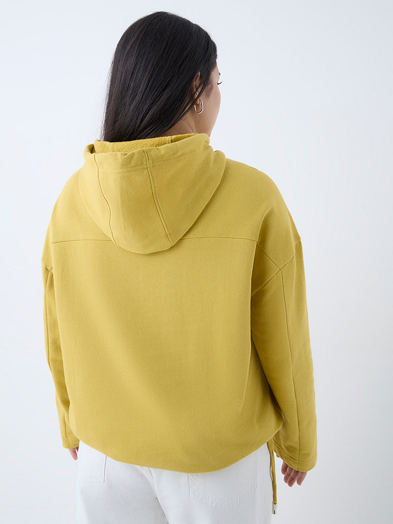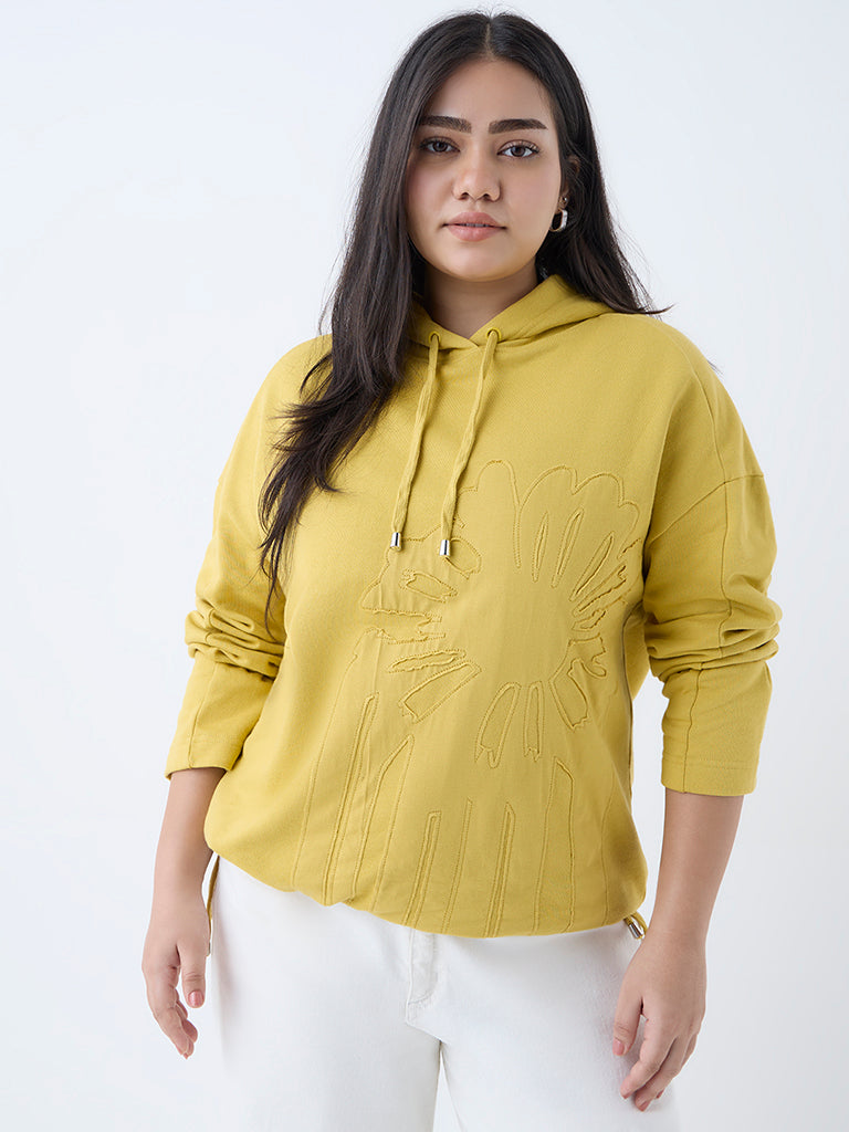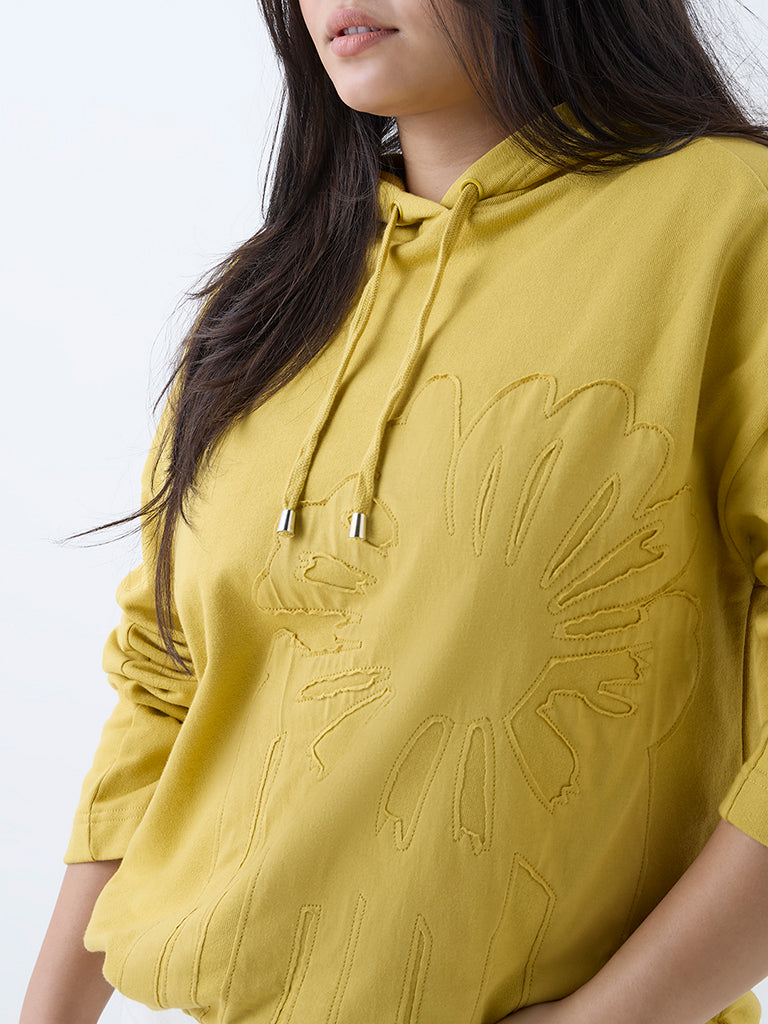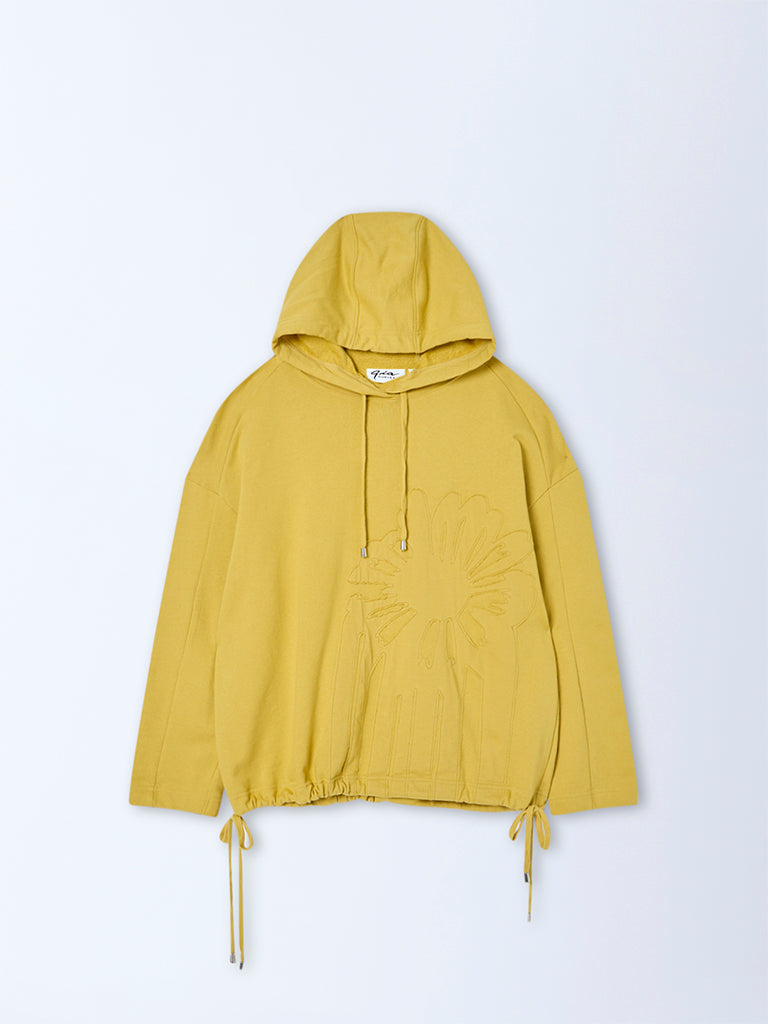 Gia Mustard Floral Embroidered Cotton Hoodie