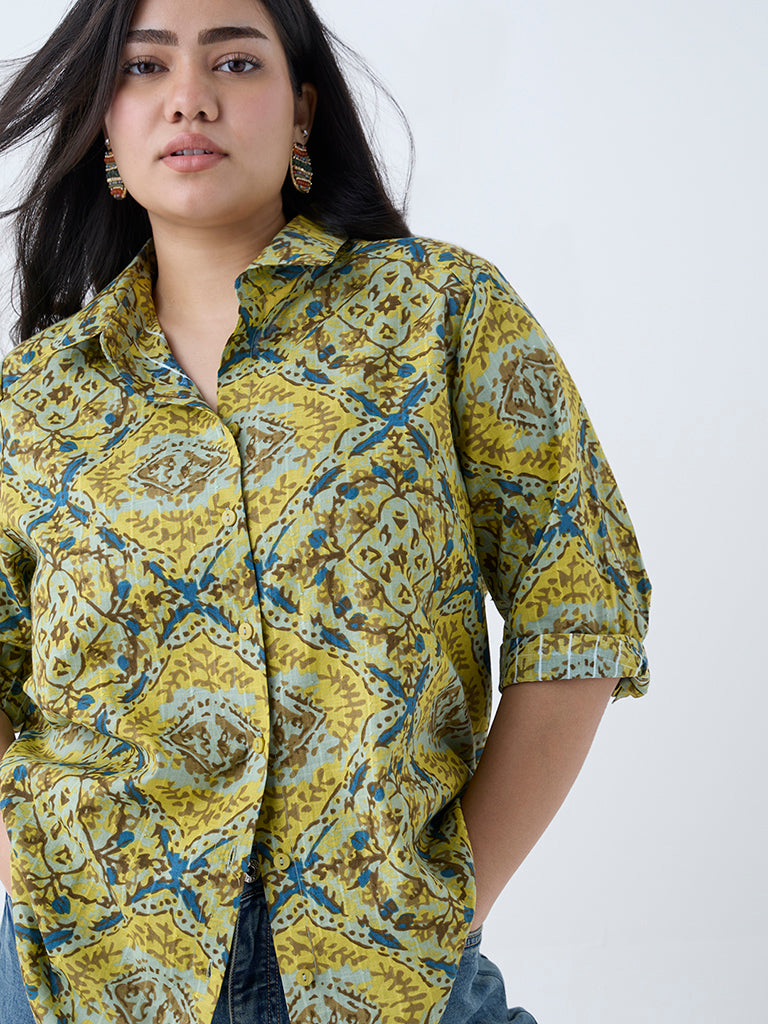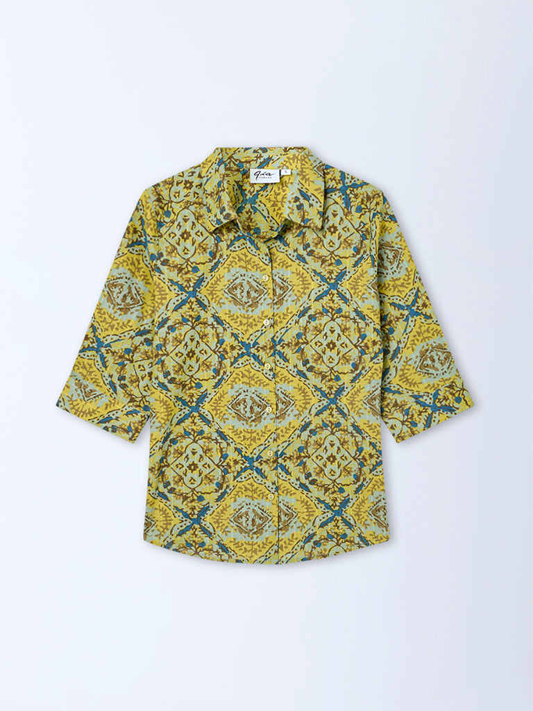 Brighten up your everyday style with this mustard shirt from Gia. detailed with a playful print for a refreshing vibe. Designed with a structured collar. button-down front and three-quarter sleeves. it’s a versatile piece that instantly elevates your style quotient.