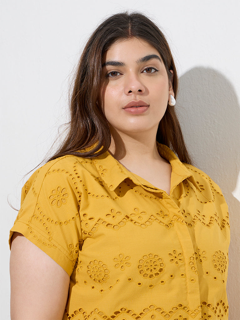 Gia Mustard Schiffli Detailed Cotton Shirt