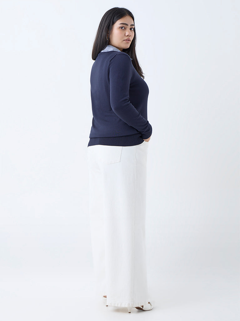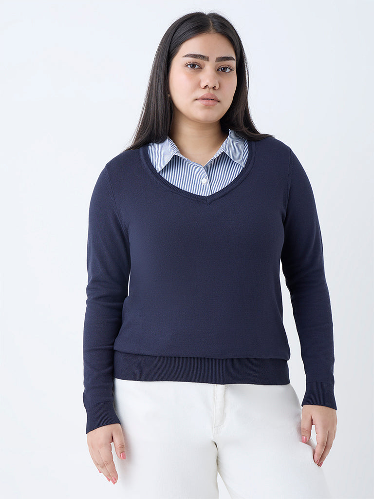 Defined by a striped collar and a single button detail. this navy sweater from Gia turns everyday layering into a statement. Woven from quality fabric and finished with full sleeves. it strikes the ideal balance between comfort and polish.