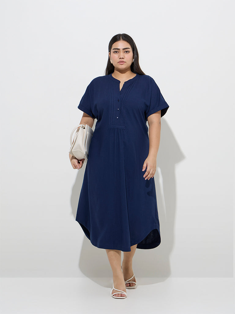 Gia designed for a minimalistic look. this navy solid dress features a mandarin neckline that flows into a button placket. Dolman sleeves add a relaxed touch. while its breathable composition ensures superior comfort.