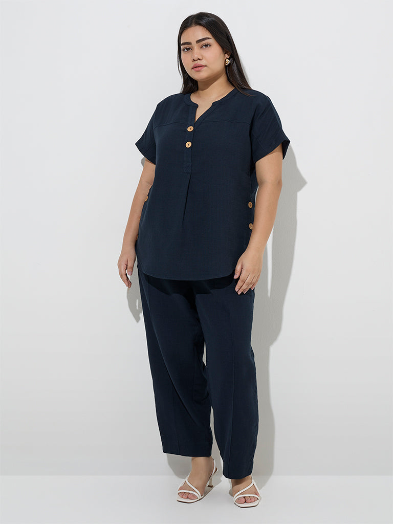Tailored from a cotton-rich fabric for all-day ease. these navy solid pants from Gia feature a buttoned waistband. a zipper fly. and functional side pockets for a blend of style and practicality.
