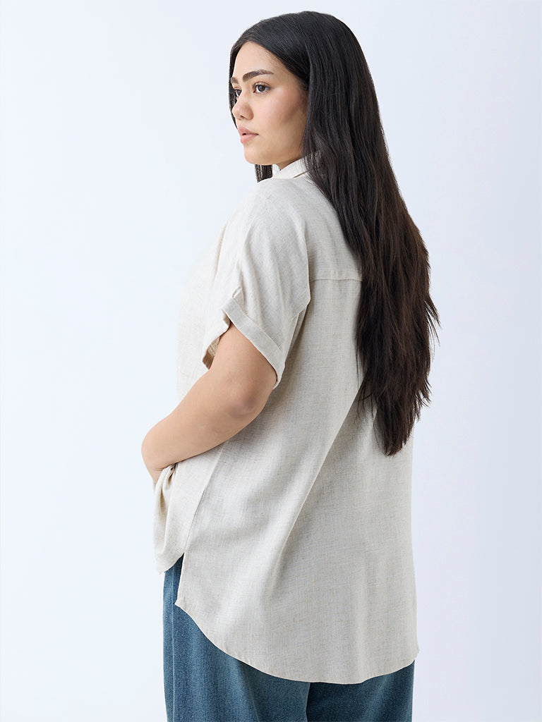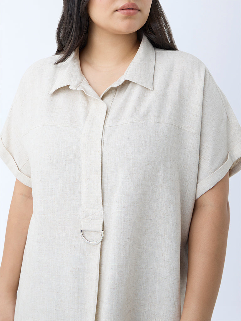 This off-white blouse from Gia is spun from a linen-blend fabric that offers a luxe feel against the skin. Designed in a relaxed silhouette. it features a classic collar. an imitation button placket. and upturned dolman sleeves that lend a laid-back yet refined finish.