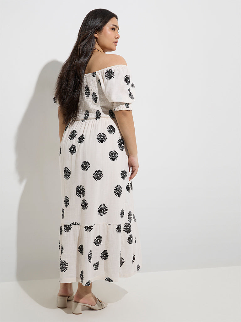 Gia Off-White Floral Pattern Cotton A-Line Dress