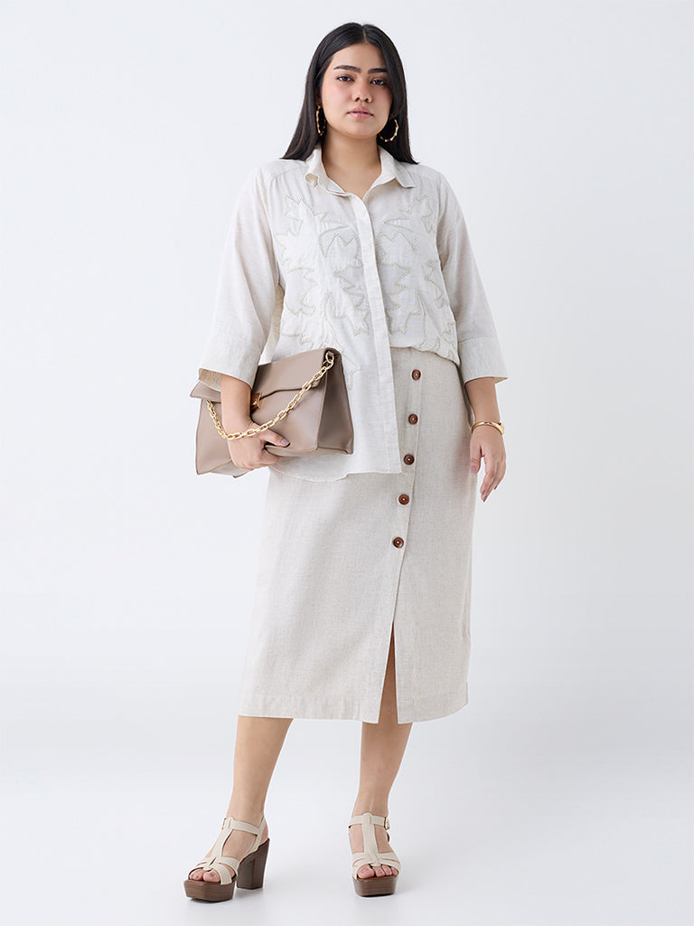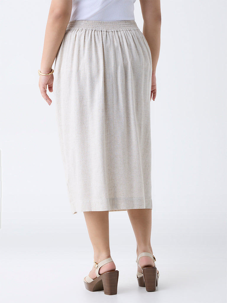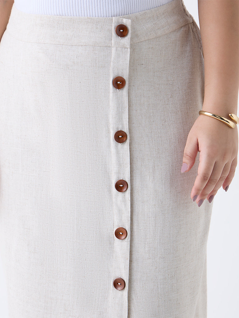 Refined simplicity meets function in this off-white skirt from Gia. Accented with button detailing. the silhouette is anchored with a comfortable waistband and practical pockets ??a chic choice to style with blouses. knits. or tees.