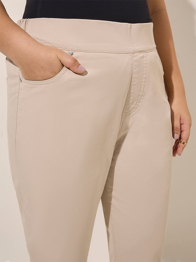 Gia launches these off-white jeggings made with premium quality fabric. The high-rise bottom wear is designed with smooth elastic waistband and side pockets.