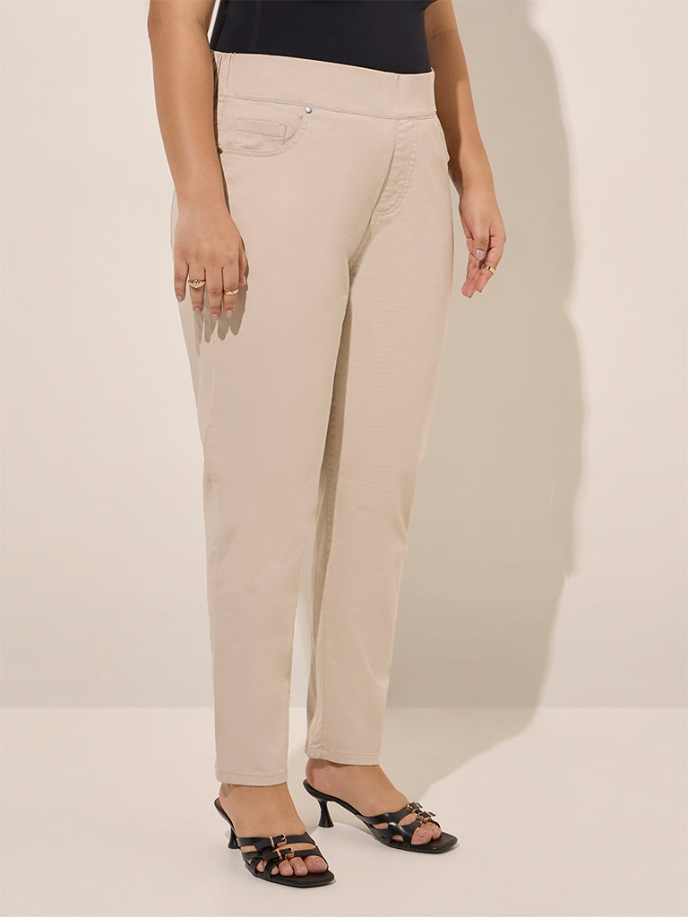 Gia Off-White Solid High-Rise Cotton-Blend Jeggings