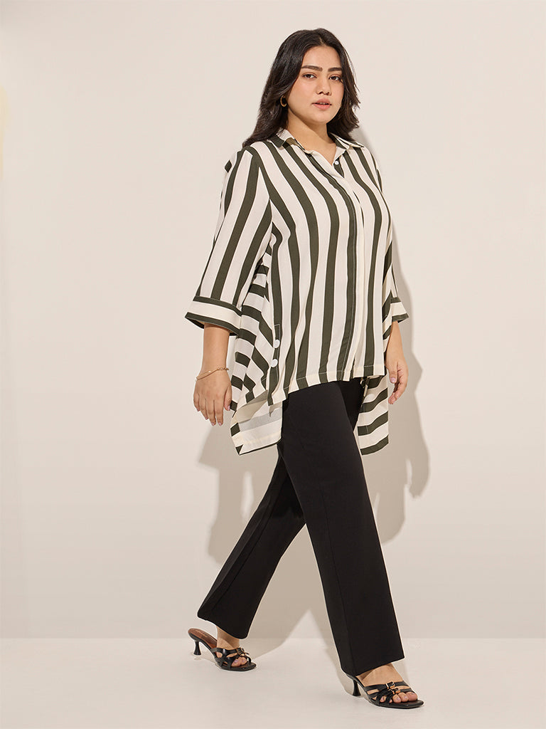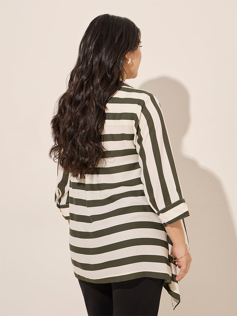 Gia Olive Stripe Printed Asymmetrical Shirt