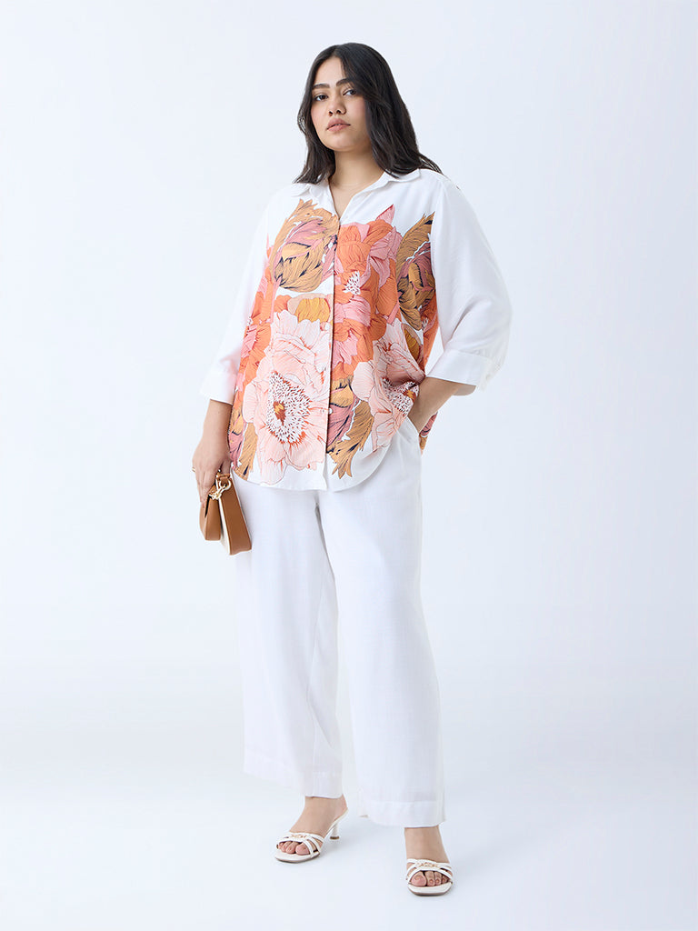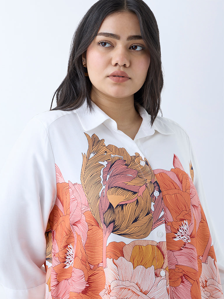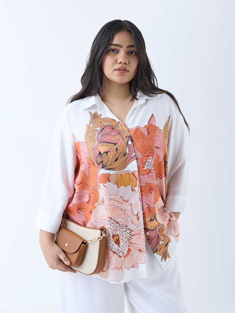 Gia Orange Floral Pattern Shirt