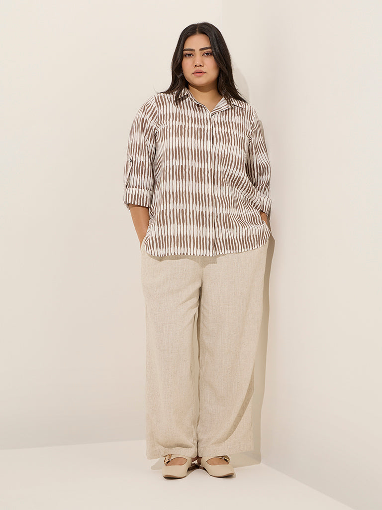 Be the first to review “Gia Taupe Abstract Printed High-Low Shirt”