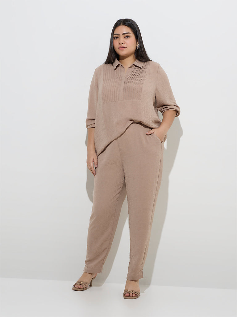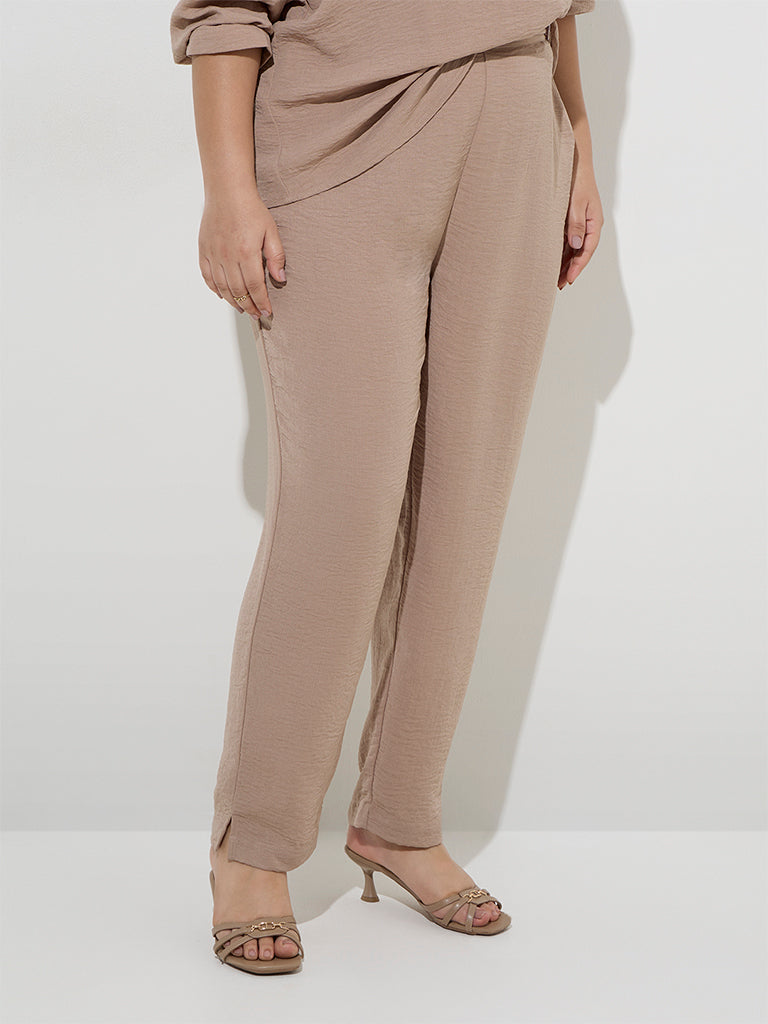 Gia Taupe Crinkle Texture Mid-Rise Pants