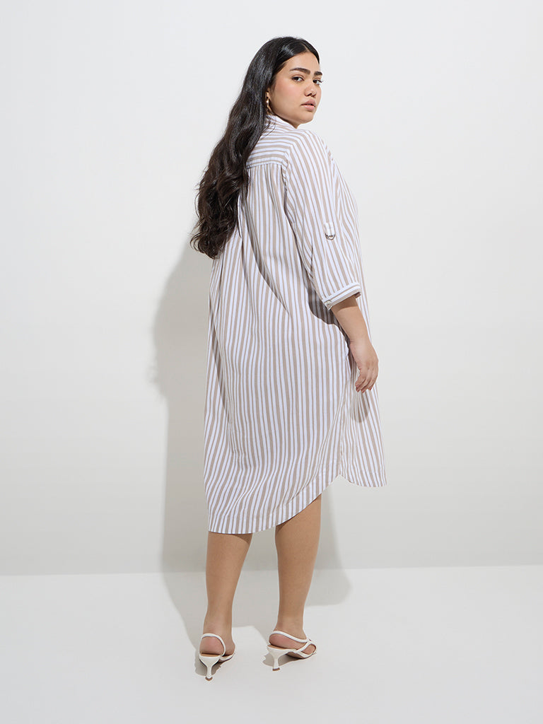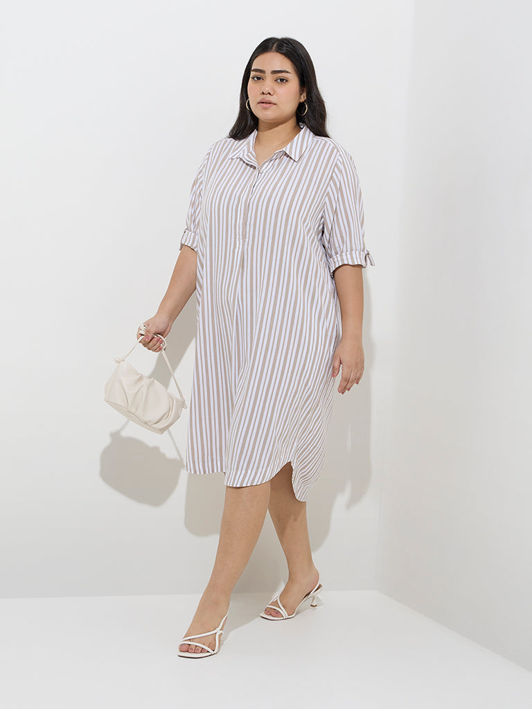 Gia Taupe Stripe Printed Cotton-Blend A-Line Dress