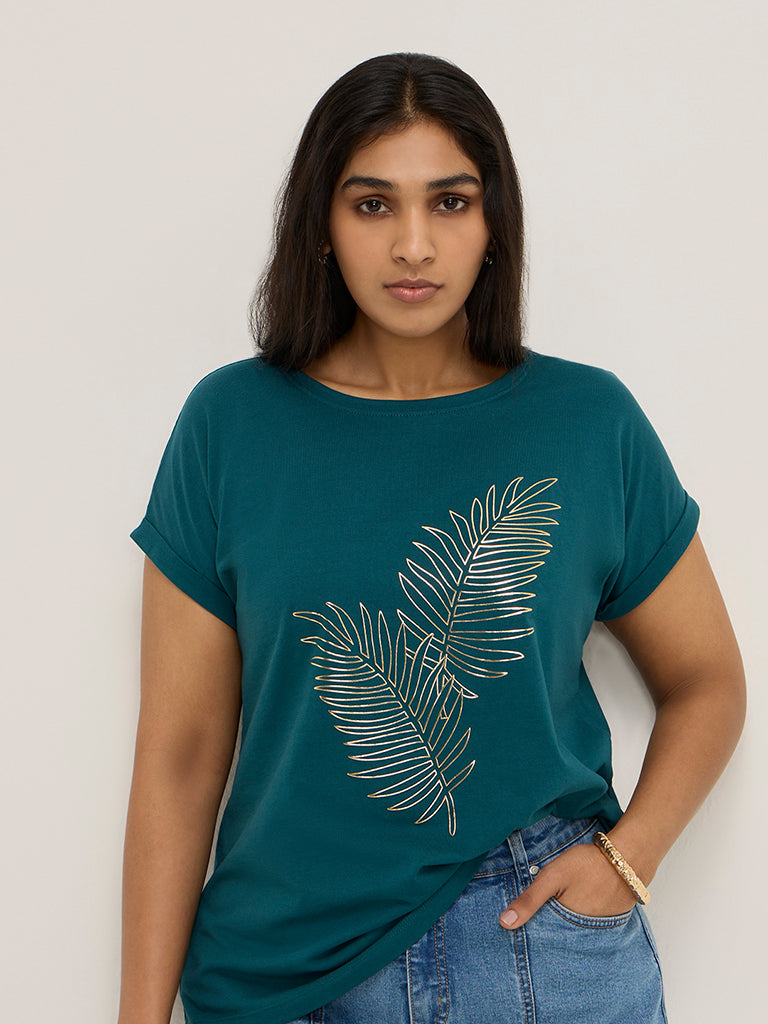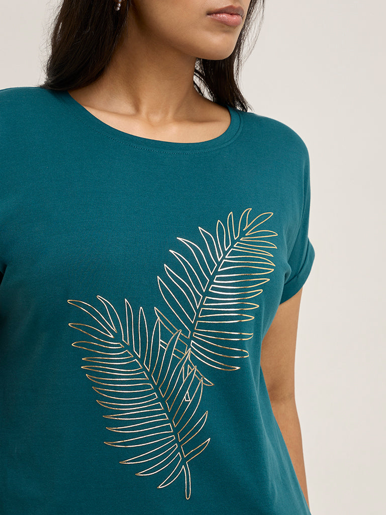Be the first to review “Gia Teal Leaf Design Cotton T-Shirt”