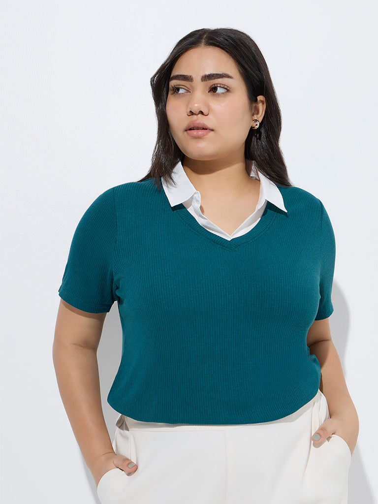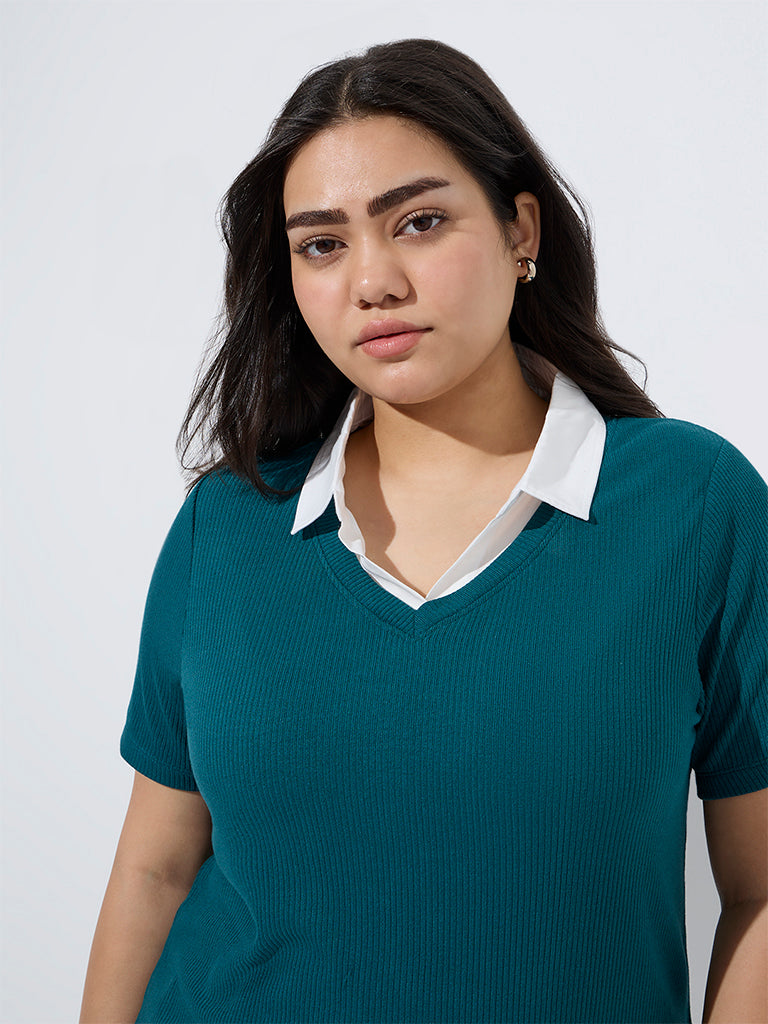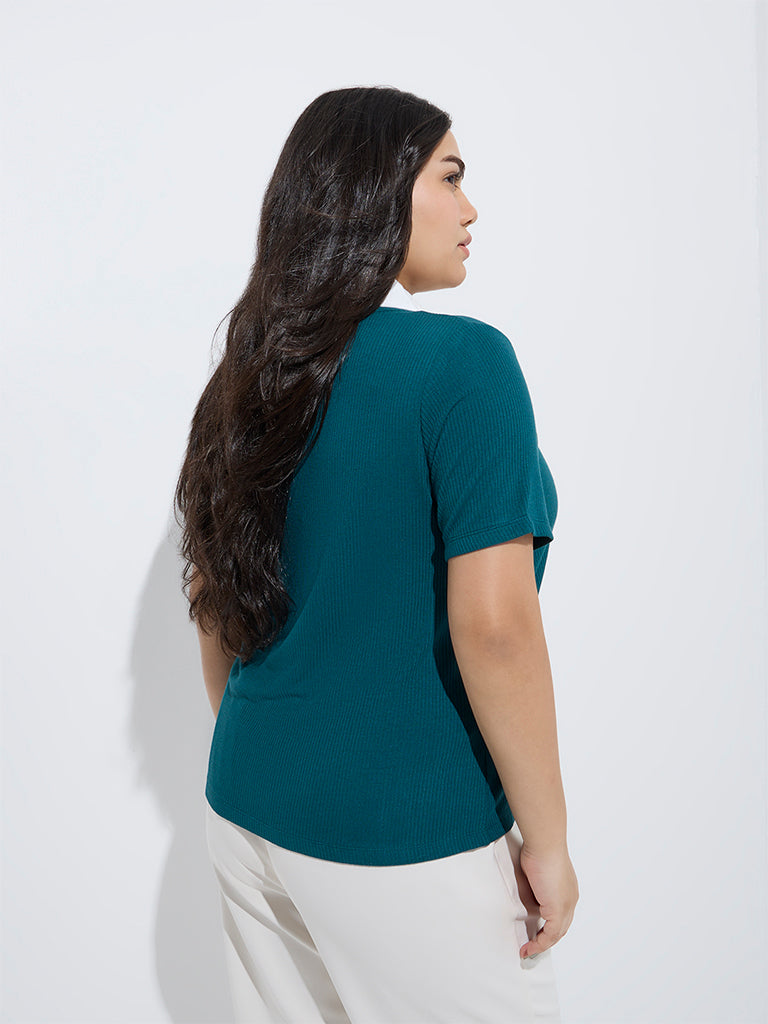 Gia Teal Ribbed-Textured T-Shirt