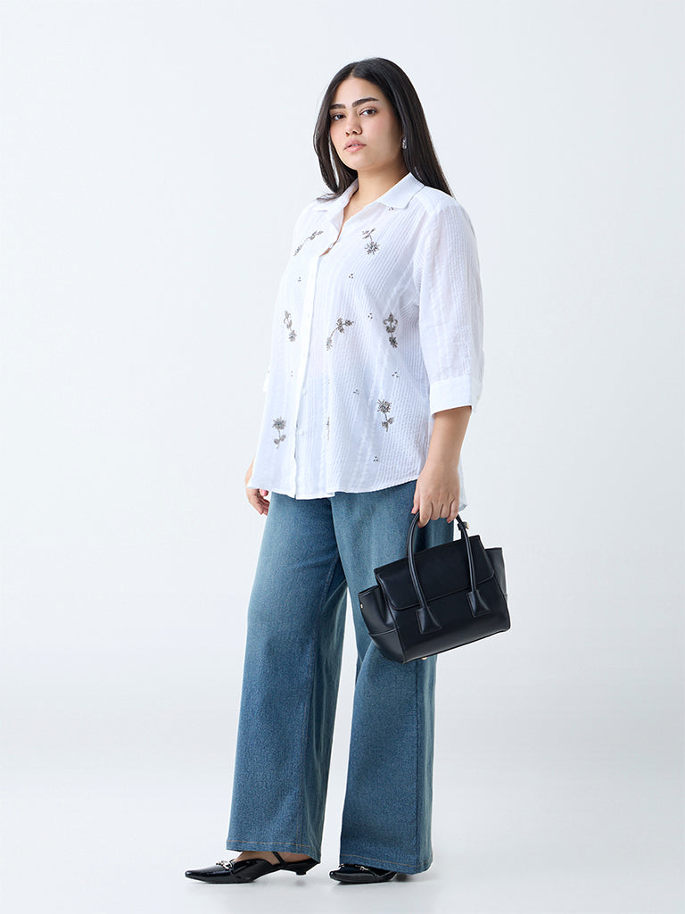 Be the first to review “Gia White Embellished Cotton Shirt”