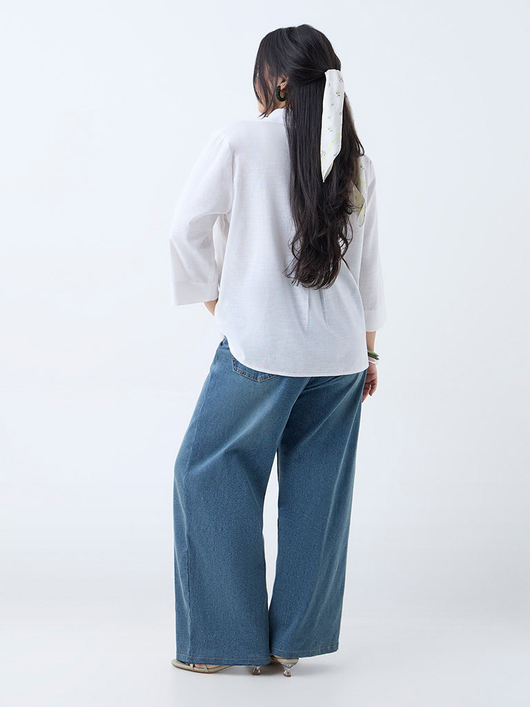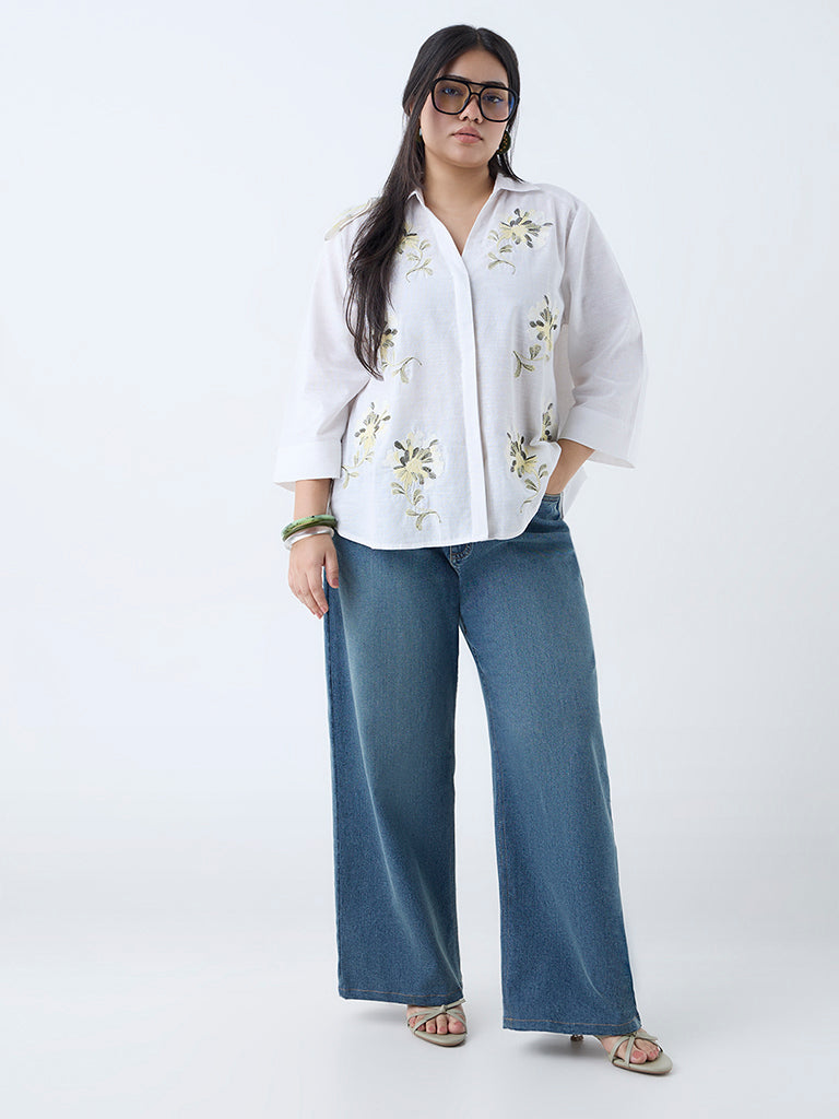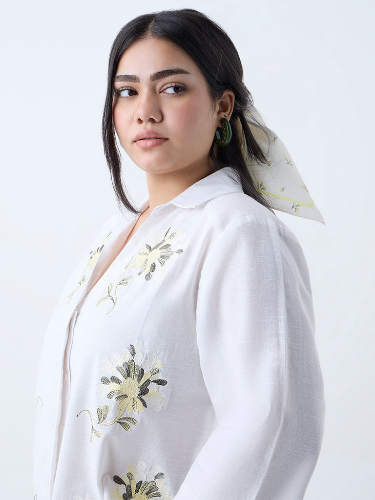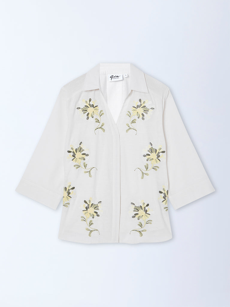 Gia White Floral Embroidered Cotton Shirt