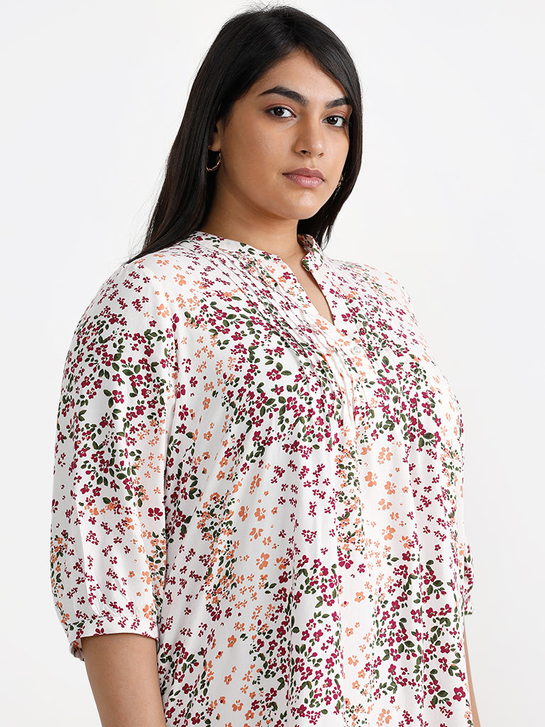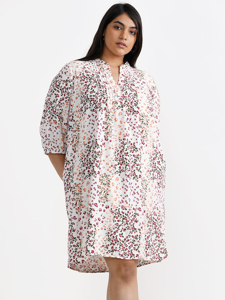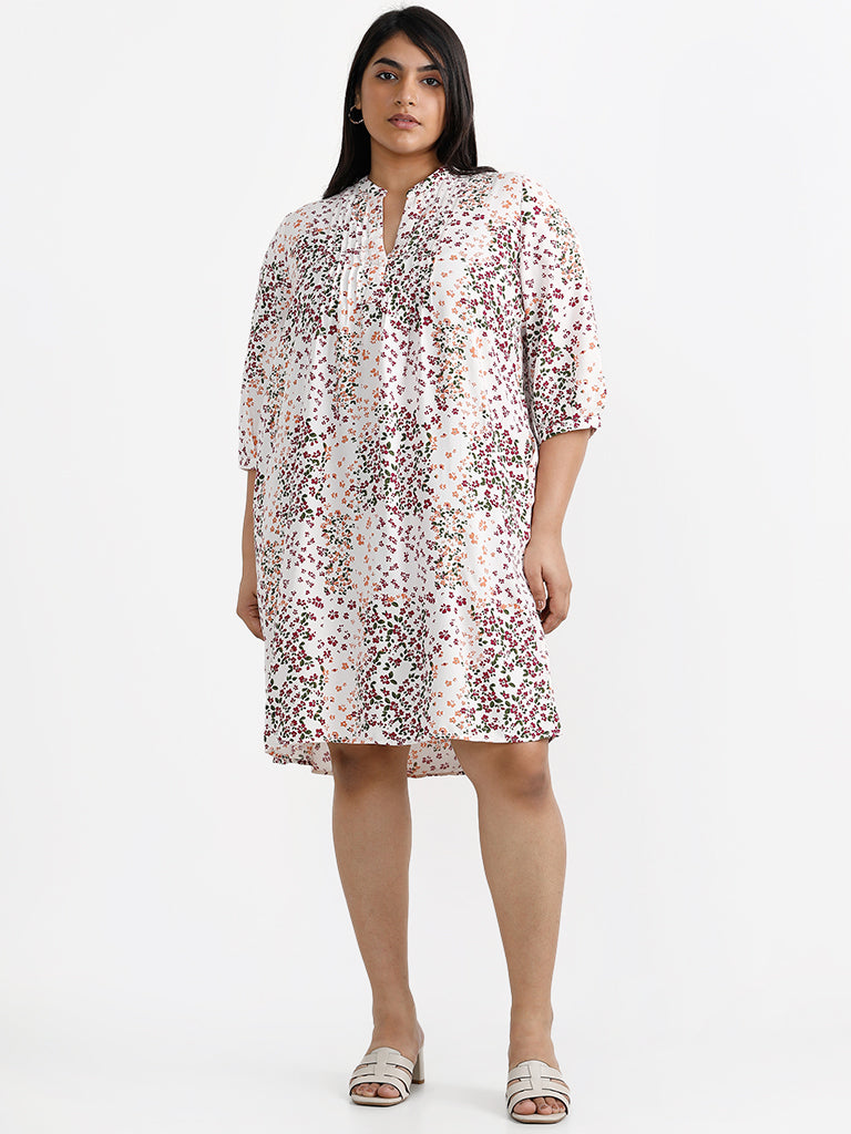 Infuse chic charm in your casual repertoire by opting for this white dress from Gia. Covered with floral patterns all over the lightweight garment. the plus-sized creation features pintuck detailing at the neckline for added appeal. while the pockets render a practical finish.
