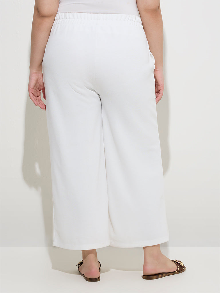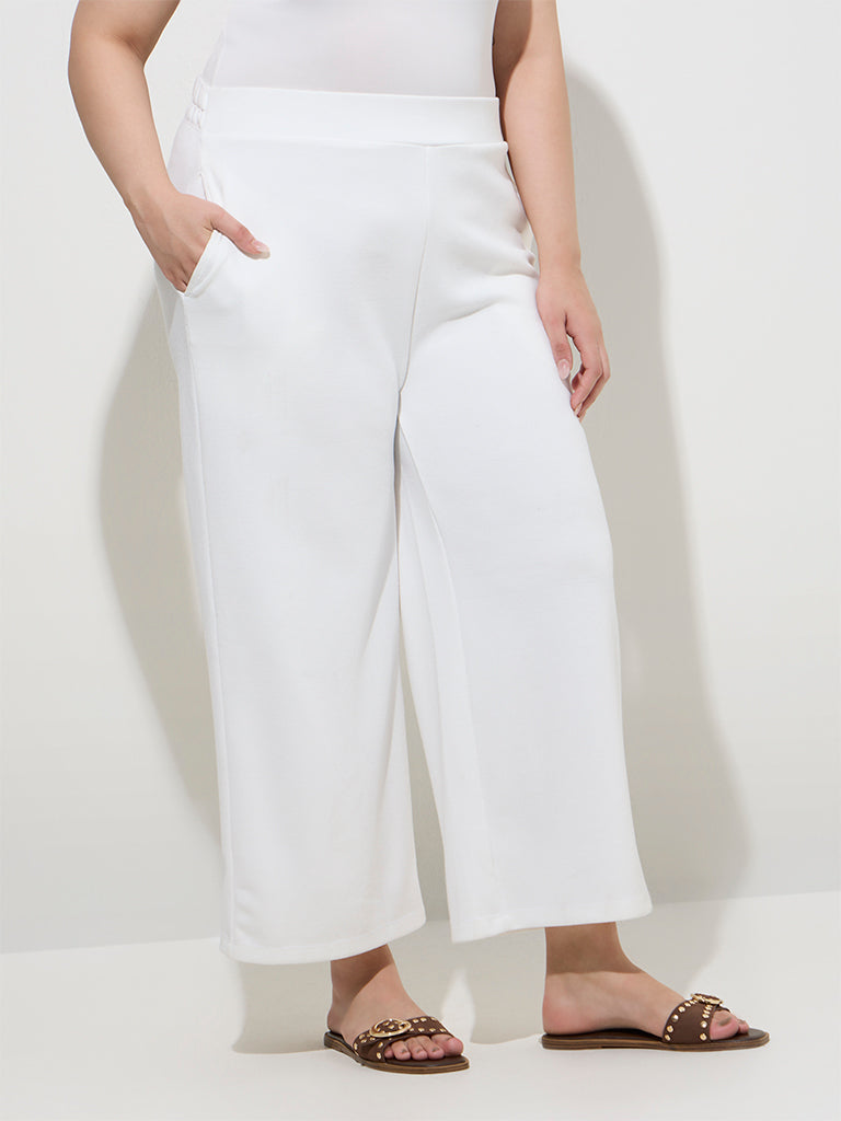 This pair of white trousers from Gia is built from a lightweight fabric and styled with a clean. minimalistic profile. Designed with an elasticated waistband and functional side pockets. this versatile piece pairs effortlessly with coordinated separates or stands strong on its own for laid-back everyday looks.