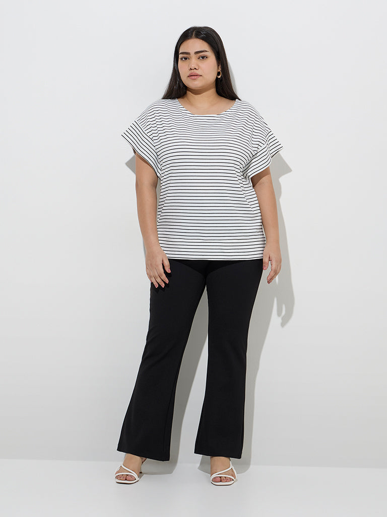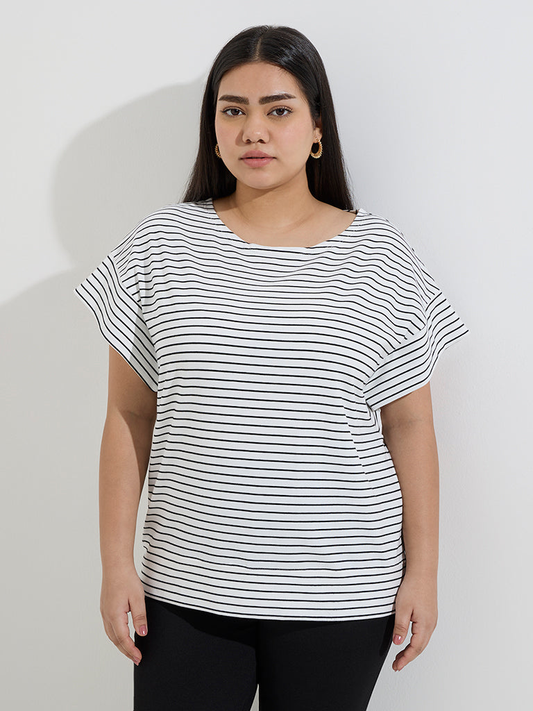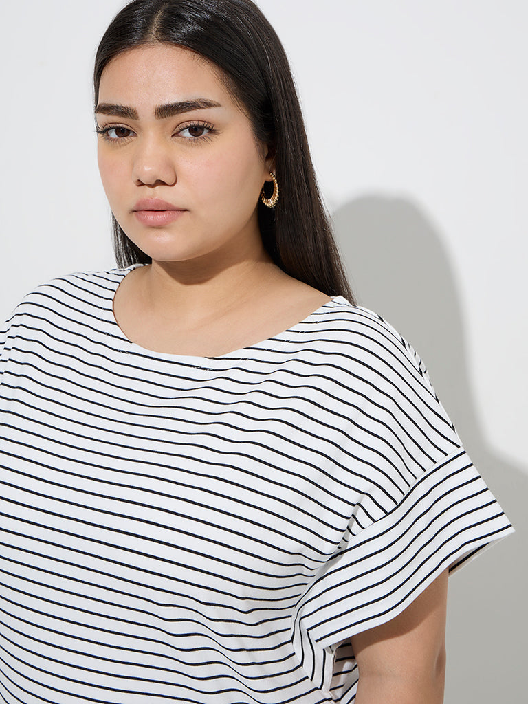 This white t-shirt from Gia is crafted from a rich cotton-blend fabric with a hint of stretch. Designed with timeless stripes. it features a classic round neck and relaxed dolman sleeves.