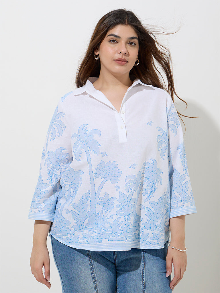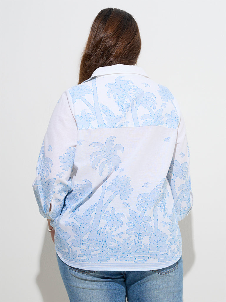 Gia White Tropical-Inspired Cotton-Blend Blouse