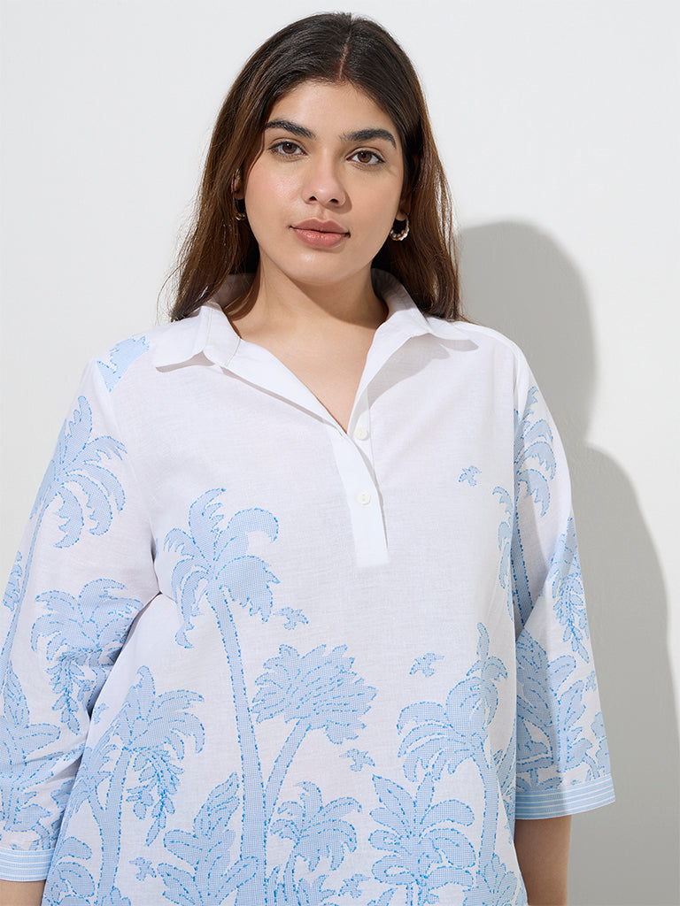 This white blouse from Gia exhibits playful tropical-inspired prints for a breezy touch. Woven from a sumptuous cotton-linen blend. it features a collar that extends to a short button placket. and three-quarter sleeves??ideal for effortless everyday styling.
