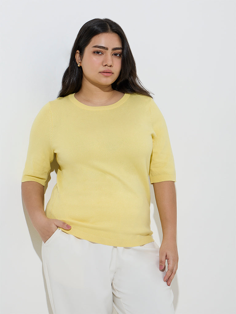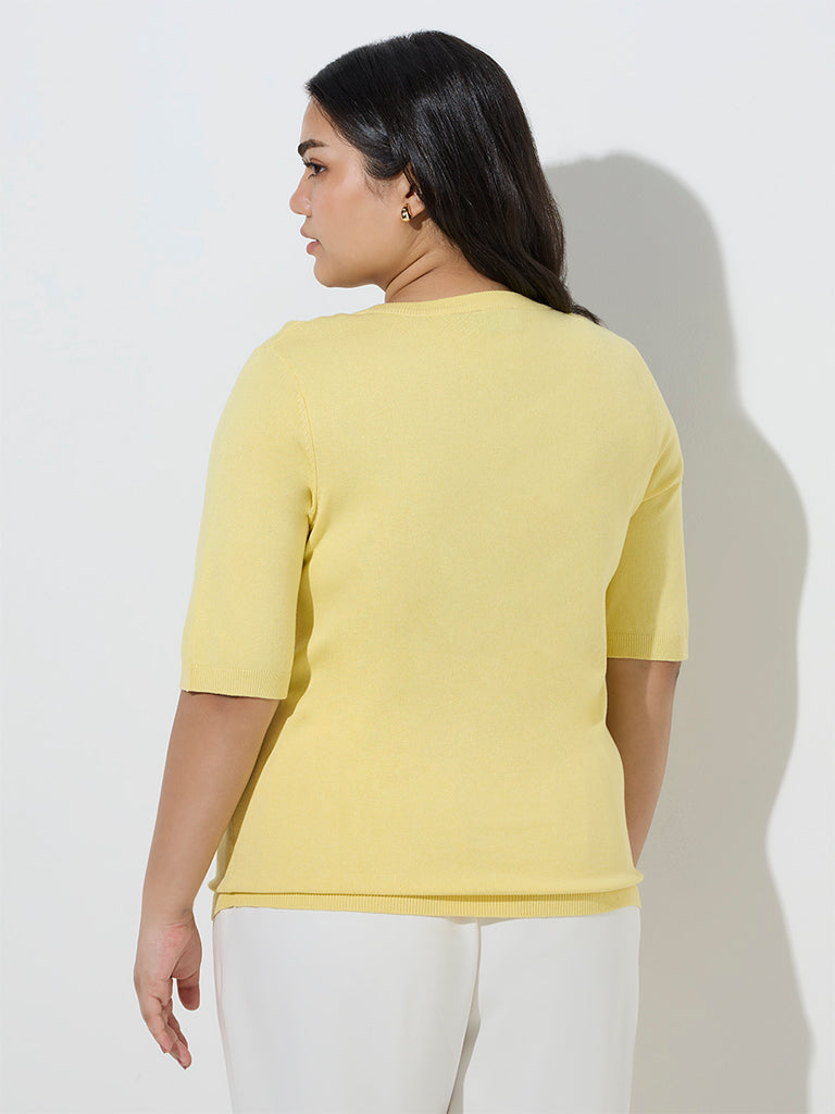 Gia Yellow Solid Knitted T-Shirt