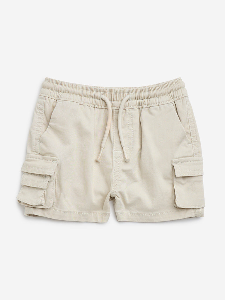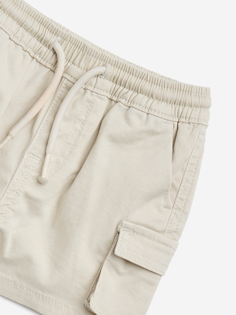 HOP Baby Beige Cargo-Style Mid-Rise Cotton Shorts