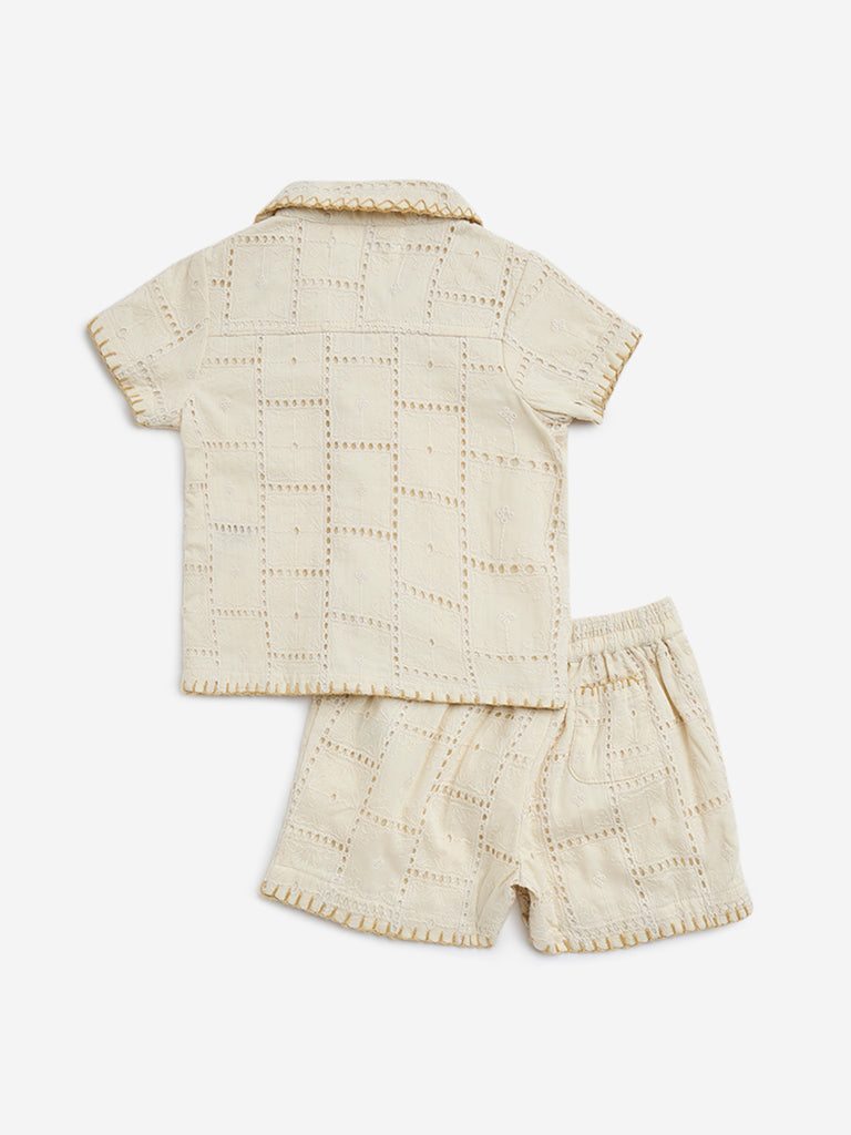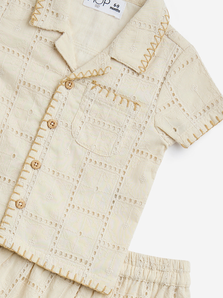 HOP Baby Beige Crochet Cotton Shirt and Shorts Set