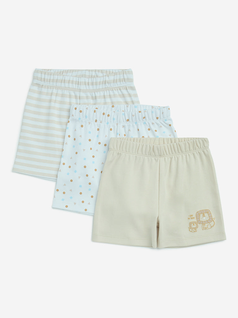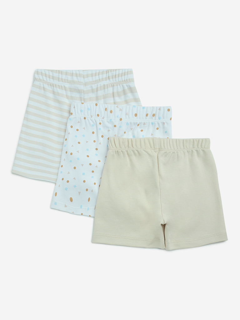 HOP Baby Beige Printed Cotton Shorts – Pack of 3
