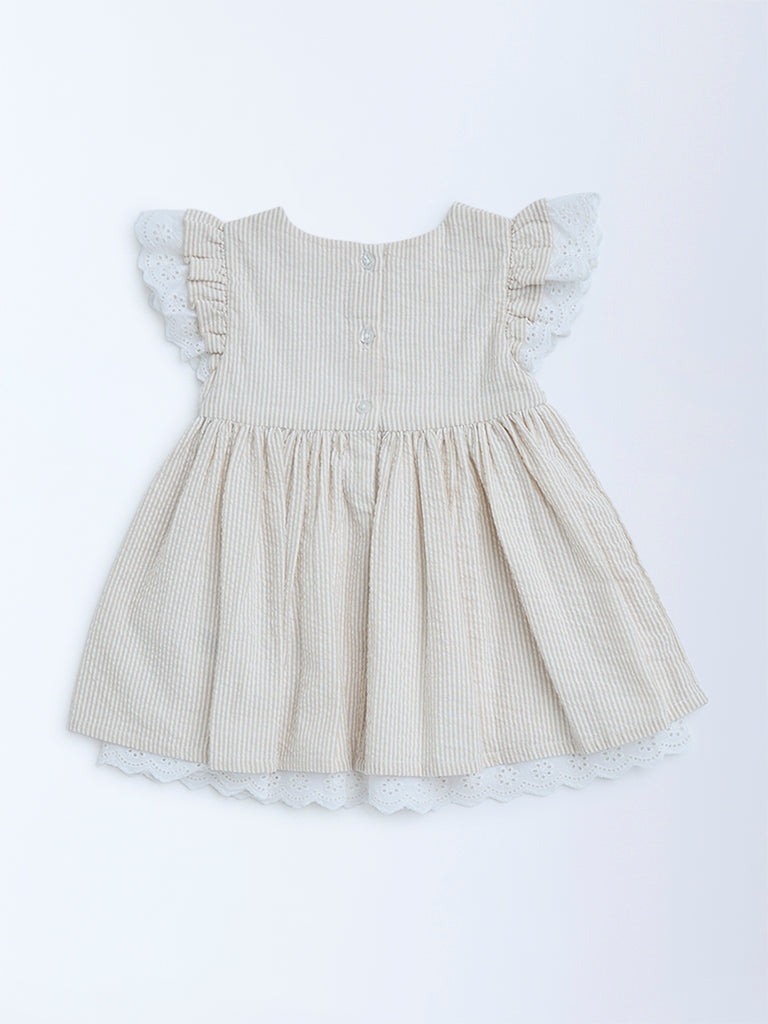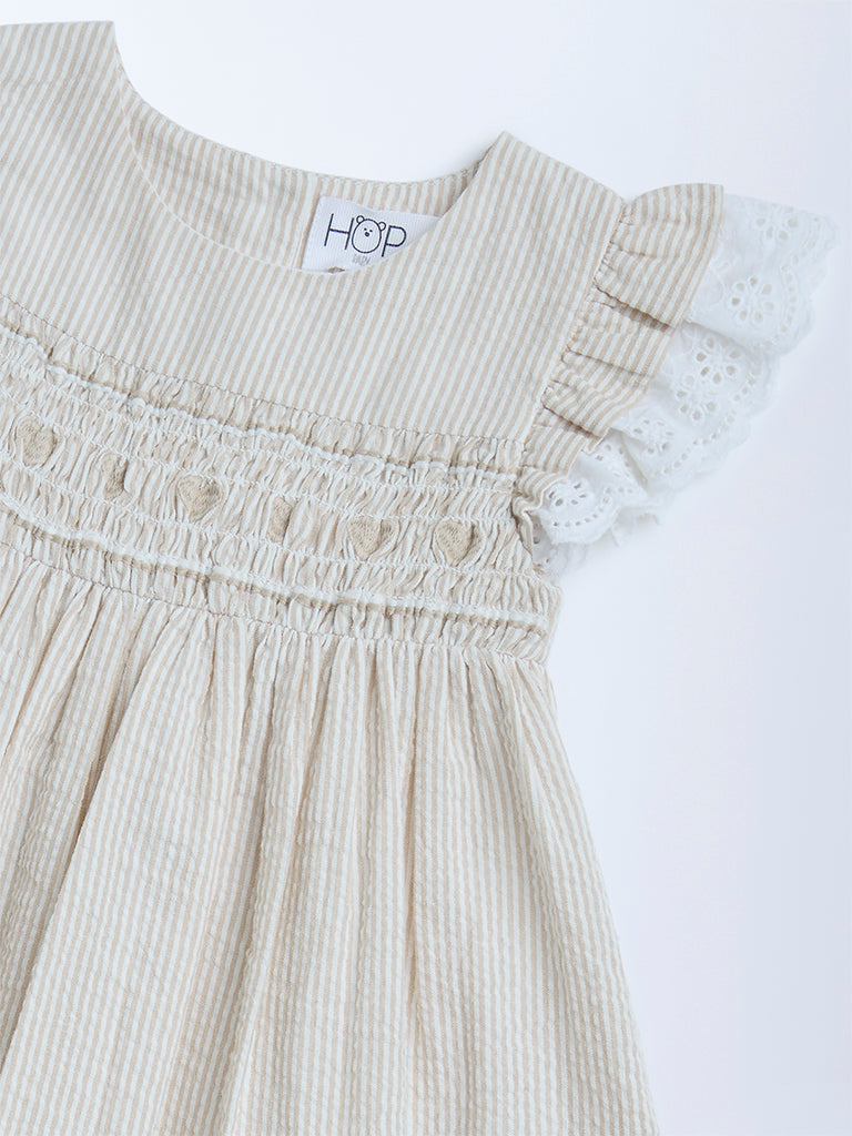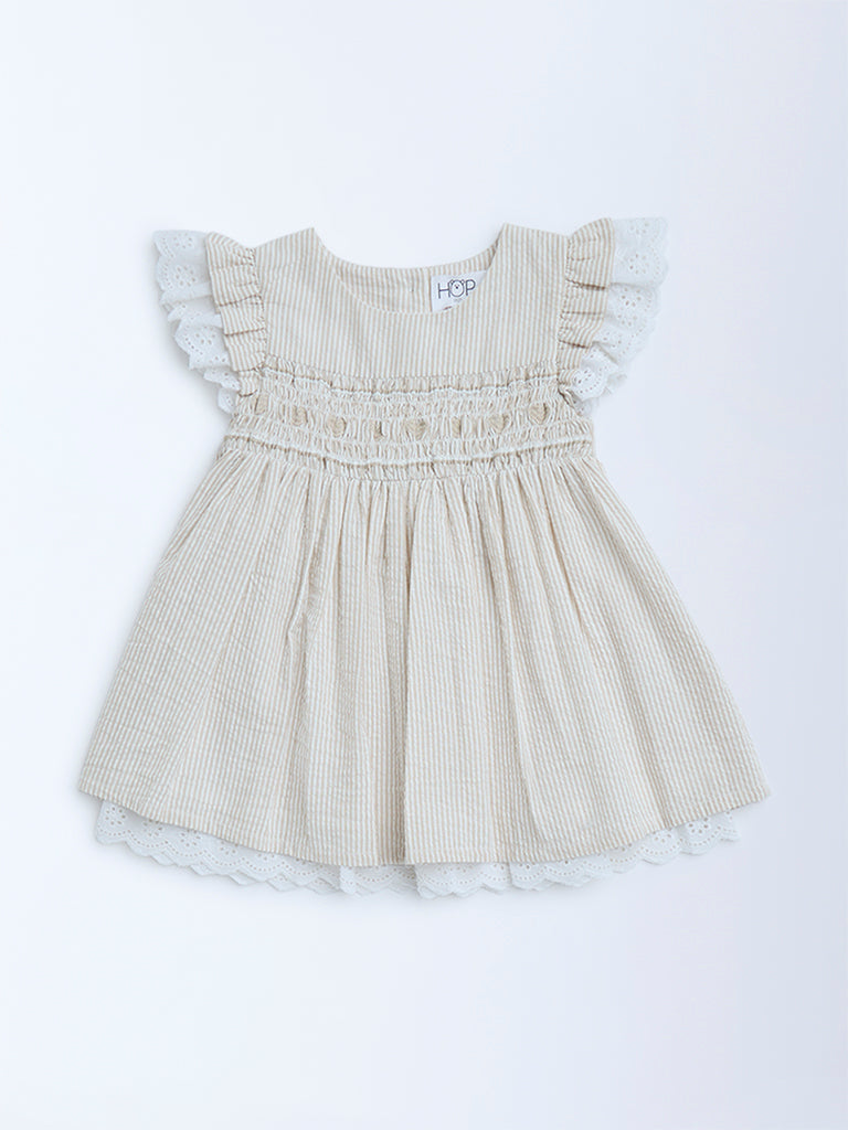Be the first to review “HOP Baby Beige Striped Cotton A-Line Dress”