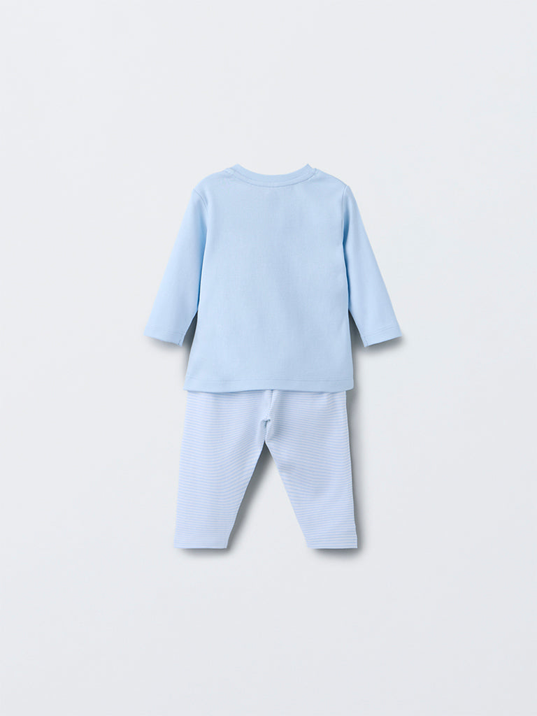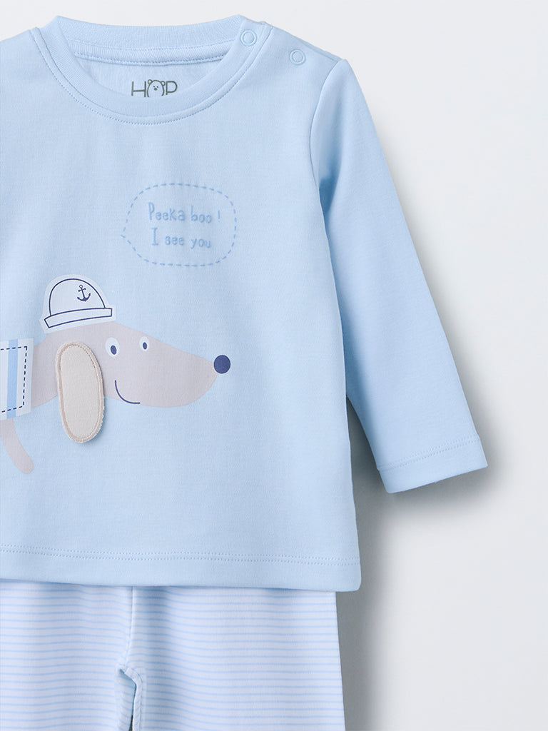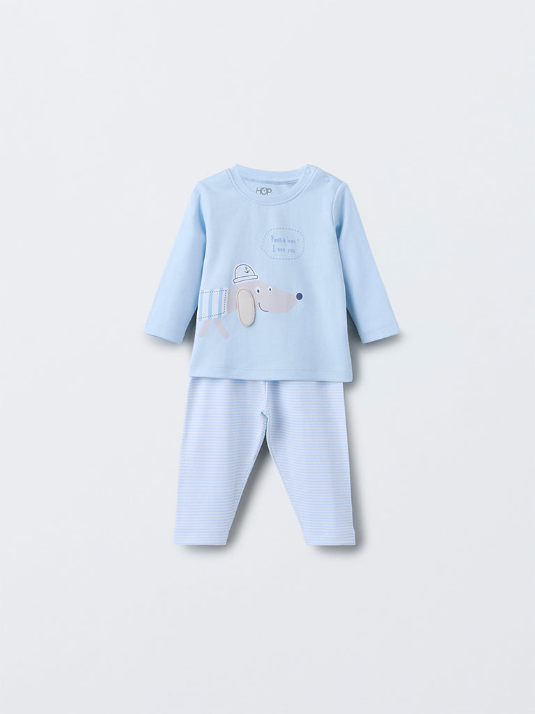 HOP Baby Blue Animal Pattern Cotton T-Shirt with Pants Set