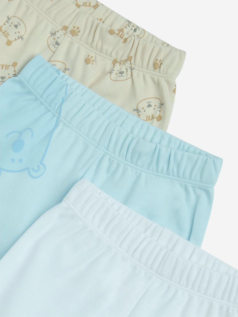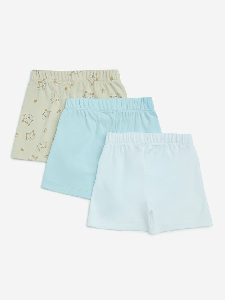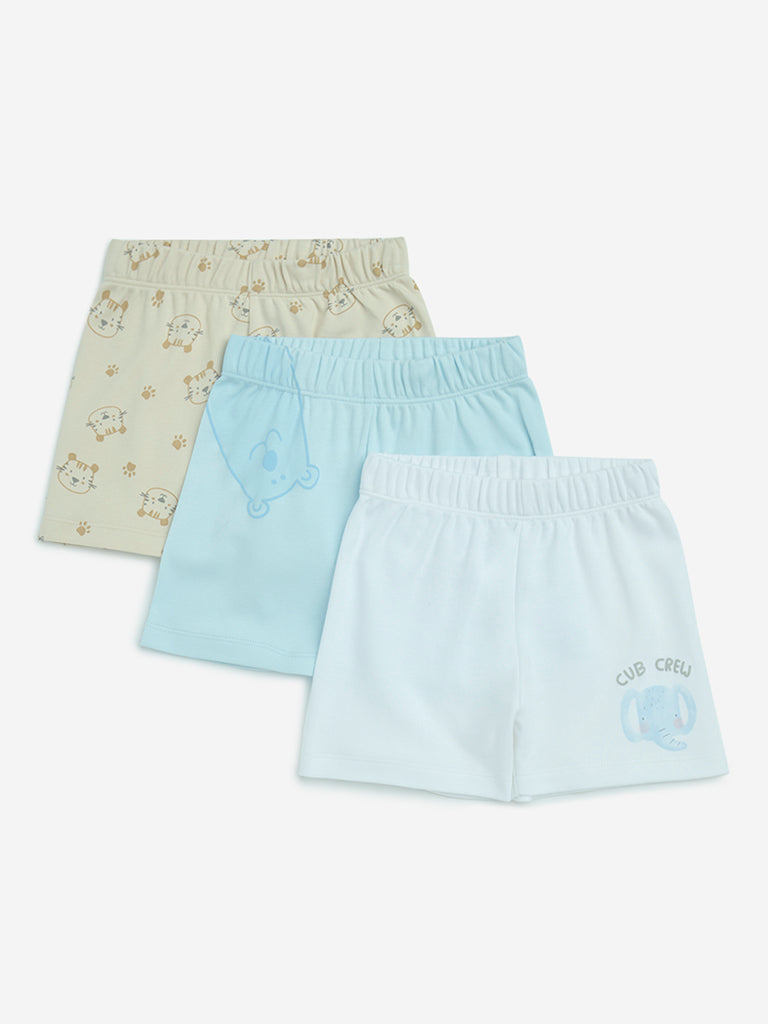 HOP Baby Blue Animal Printed Cotton Shorts – Pack of 3
